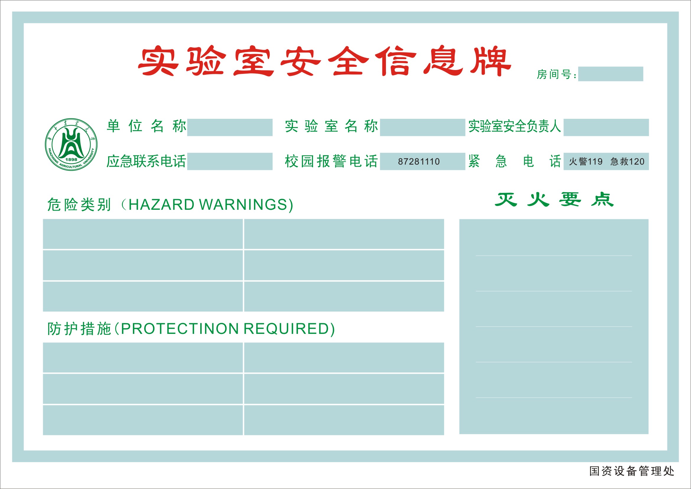 实验室安全信息牌、试剂标签及常用实验室安全标识
