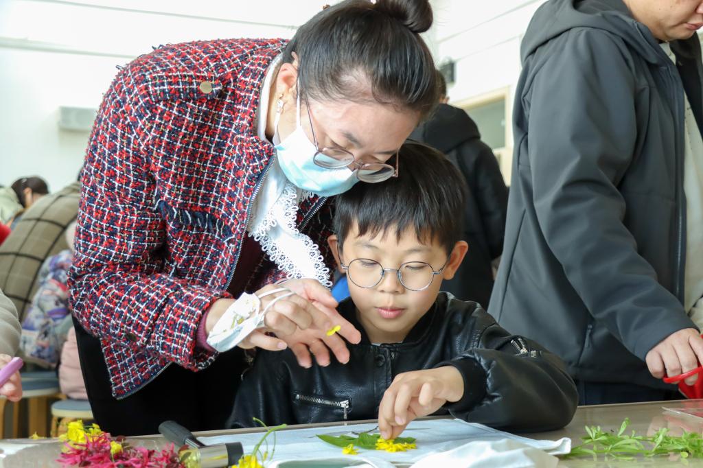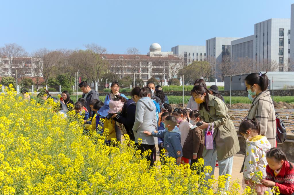 “春天,是油菜花开的季节,如何科学观察油菜?如何利用植物拓染留住春天?”3月26日上午,种子挂藏室内,第九期“小小农艺师”科普活动正在进行,全校30余名教师携带孩子共赴油菜花开,探索油菜的奥秘。
