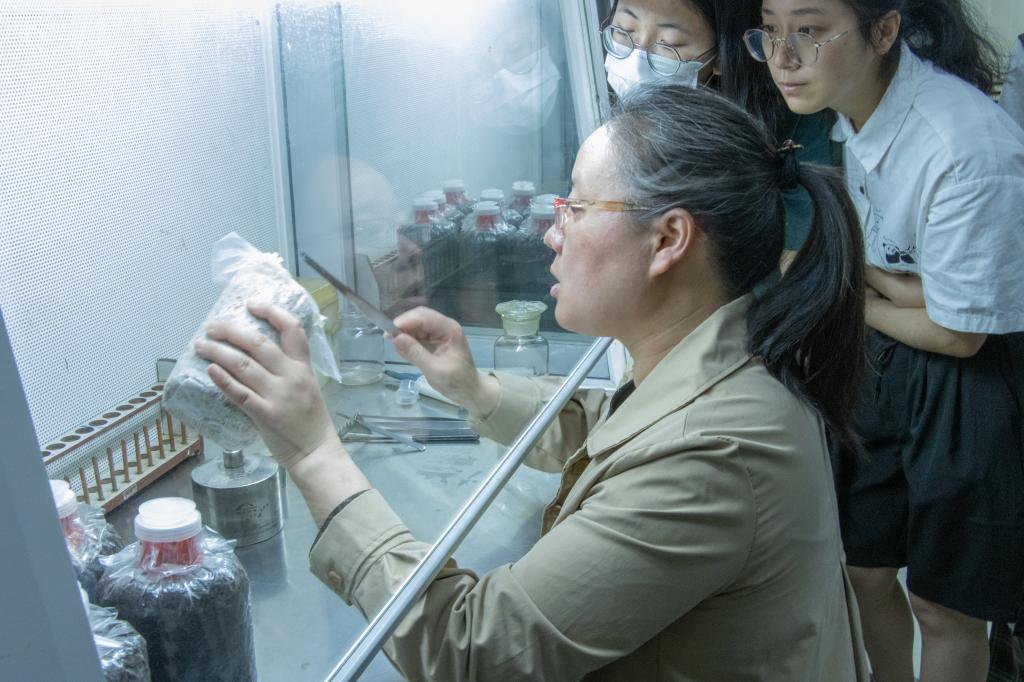 在解读食用菌的定义后,周雁和同学们分享了我国食用菌栽培史和栽培模式。“我国的食用菌栽培史分为半人工栽培、人工栽培、设施化栽培、数字化智能化栽培四个主要阶段,不同的食用菌呈现出多样化的栽培模式。”