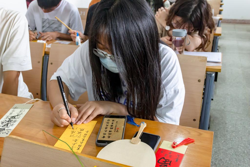 团学秘书处、组织部承办,同学们一同在团扇绘制、识趣生僻字、布袋拓印的过程中“与笔墨同行,与书卷共乐”。
