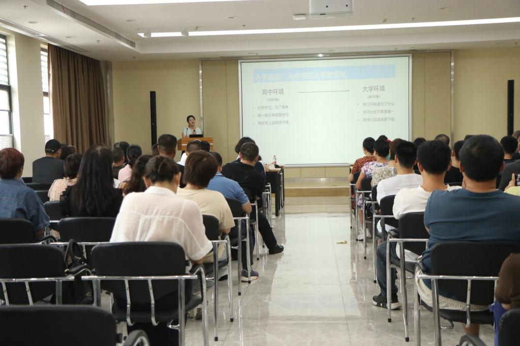 “在入学适应阶段,孩子可能会出现生理及心理层面上的双重反应,”张俊芳谈到。她以高中到大学的各项转变为引,建议家长朋友们学会思考孩子及孩子身边的变化,重视学生在身份转变过程中学习心态、学习方向、学习方法、学习环境等各个方面可能会存在的问题及变化。在随后的主题讲座中张俊芳就入学适应、心理问题如何产生、有效沟通方法等多维度与家长们进行了深入交流。