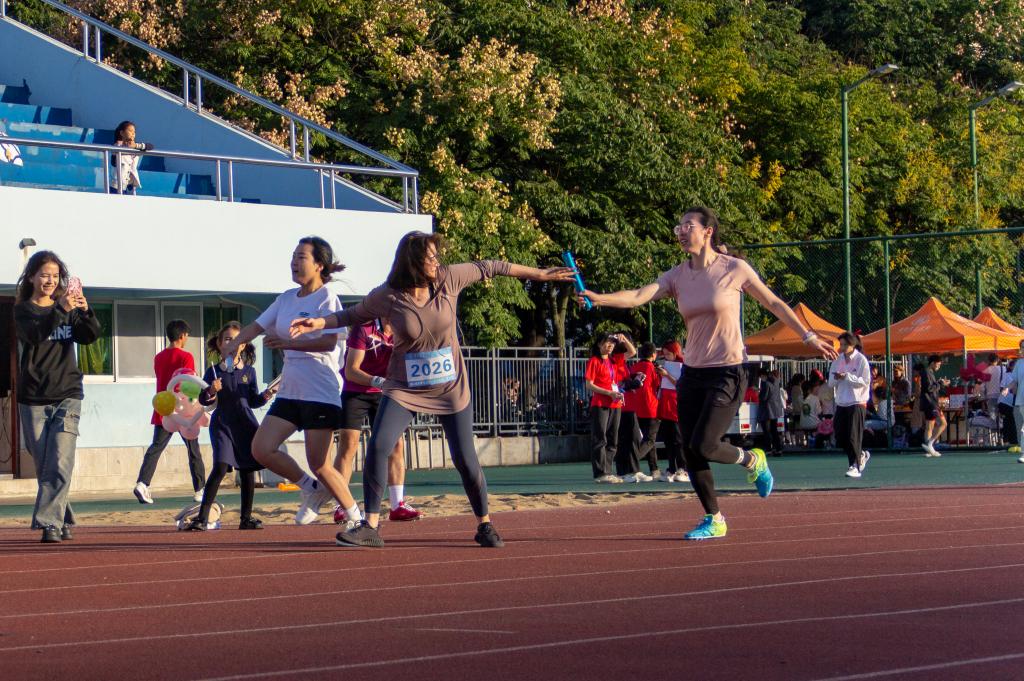 除此之外,宋慈、李焕楠、夏添和买合巴等4位老师参与了女子教工组4×100米。作为最后一棒的宋慈表示压力很大,但是对她来说享受运动场上的拼搏比成绩更为重要。“青春健康的大学生应当保持乐观的心态学会自我调节,努力寻找、实现自我价值。”她谈到,“生命在于运动,适当的运动有助于平衡工作与生活。”