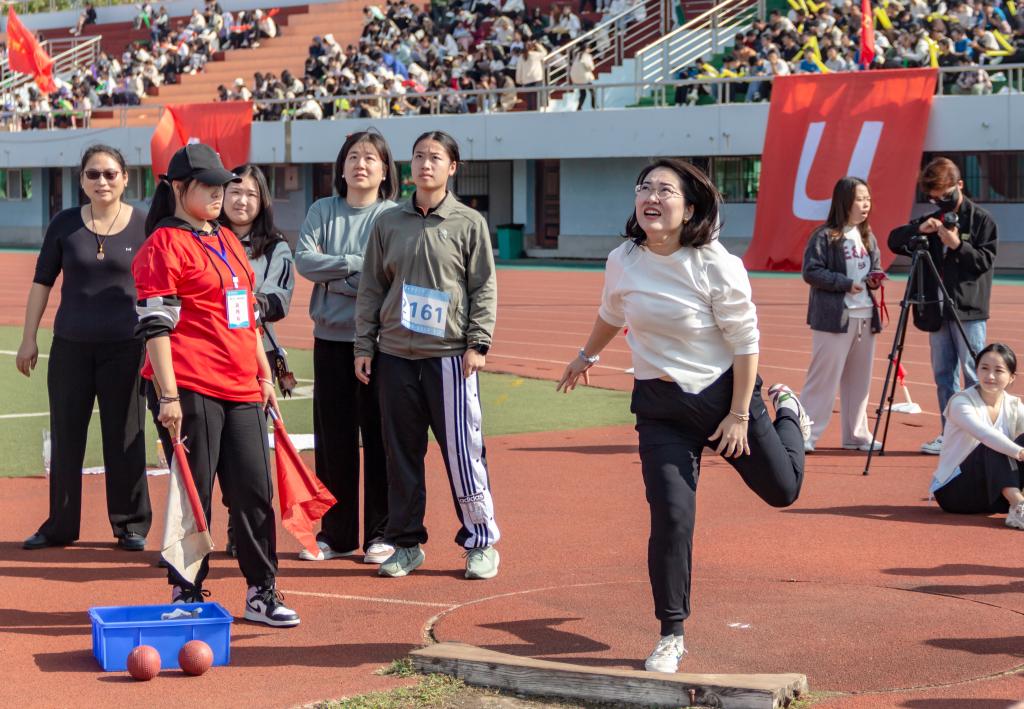 研究生教务秘书李焕楠不仅参与了女子教工组4×100米,更是教工女子组跳高的第三名。李焕楠表示,“我每周打一次羽毛球和一次排球。高水平高强度的运动是辛苦的,需要在精力上和行动上有很多的付出,但基本的锻炼时容易的,只需要多一点点时间付出,效果立竿见影”。李焕楠从学生时代起便参加运动会,至今已有十余年,大概是有过专业训练的经历,所以非常热爱体育运动。李焕楠寄语同学们:“青春健康的大学生应当有活力、有梦想,敢于拼搏,为了梦想不断试错!”
