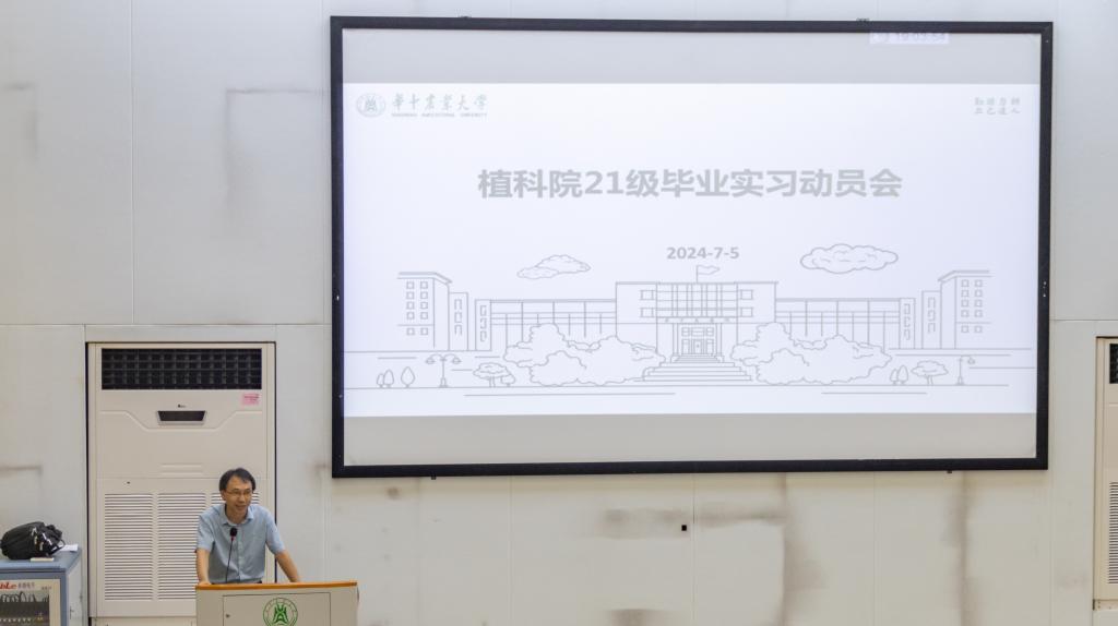 2021级本科生实习动员大会暨第七次年级大会在三教S1报告厅召开。副院长罗朝喜、王满囷,应用生物专业指导老师黄求应,辅导员李纵擎以及2021级全体本科生参会。
