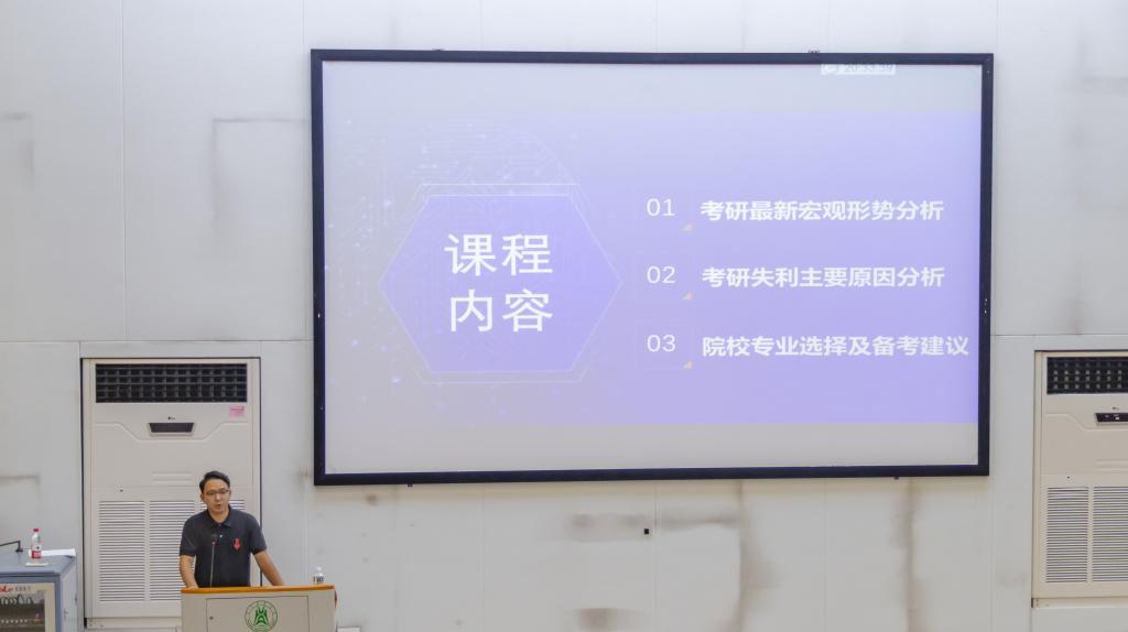 在三教S1报告厅召开25届本科生考研、考公分享会,邀请来自海文考研的涂光华讲师和华图教育的段海荣讲师针对考研和考公两方面进行宣讲,辅导员李纵擎以及2021级全体本科生参会。