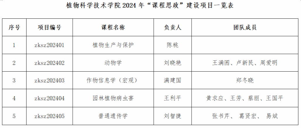 决定立项陈桃老师主持的《植物生产与保护》等5门课程开展院级课程思政示范建设。