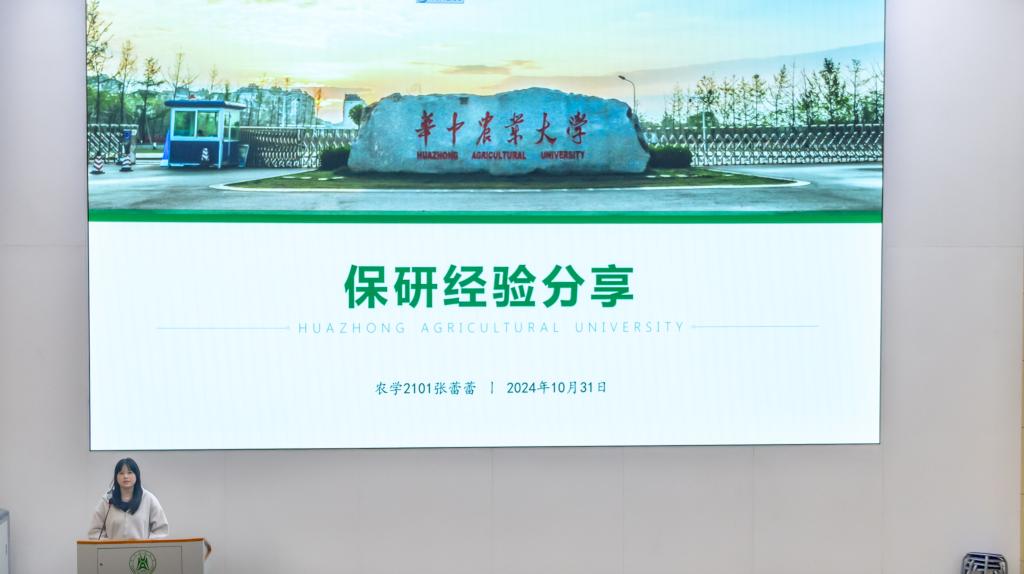 会上,保研至武汉大学生科院的张蕾蕾以“保研时间线”为切入点分享了夏令营、预推免和正推免经验。“保研是一场马拉松,需要良好的心态和健康的体魄。”张蕾蕾以此勉励同学们,鼓励大家不要提前焦虑,要对自己始终有信心。