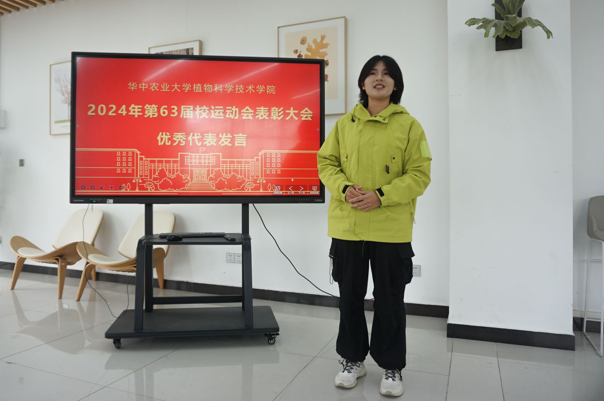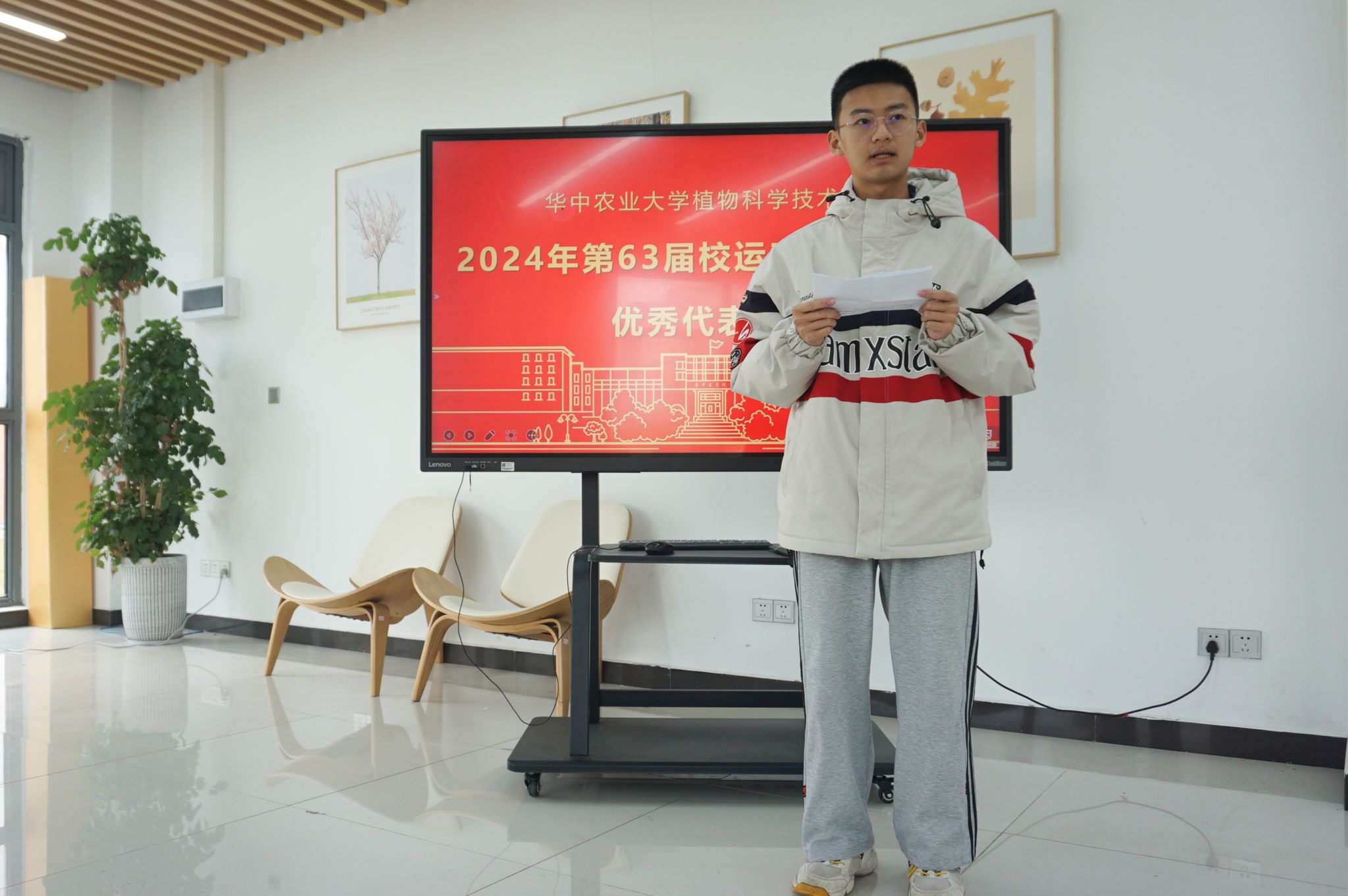 植生2405班樊黄宇作为优秀运动员代表分享谈到,他从小便享受运动带来的快乐,也正是因为这份享受,才培养起众多与运动有关的爱好。“人的一生一定需要坚持体育锻炼,这次运动会获奖是对我努力的肯定,也是对我以后继续坚持体育锻炼的极大鼓舞。”樊黄宇以此勉励同学们将体育锻炼融入生活,成就更好的自己。