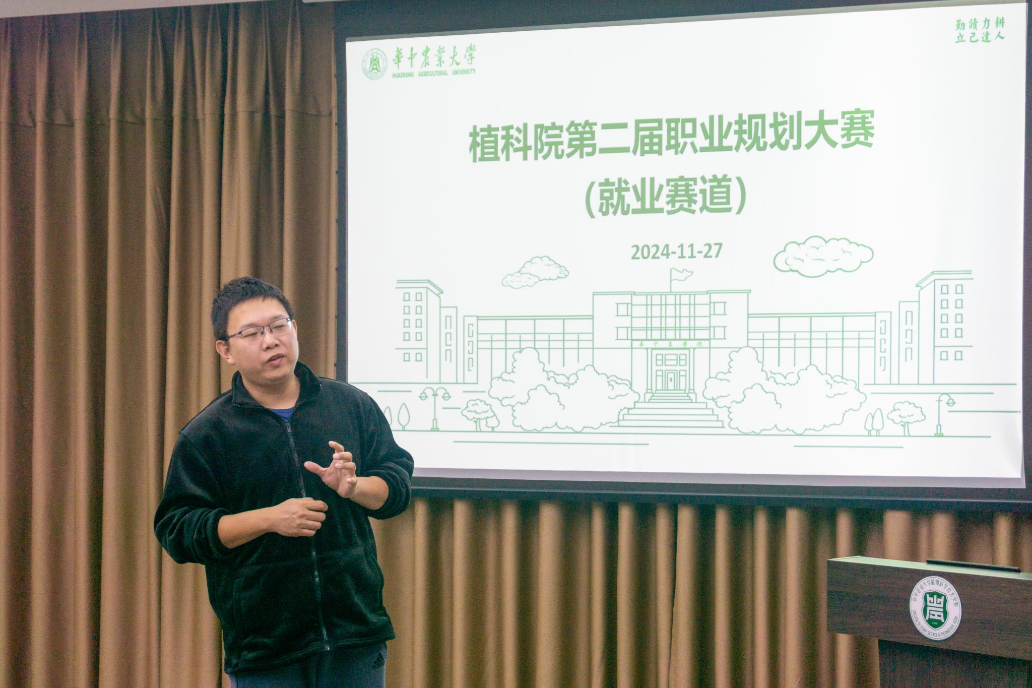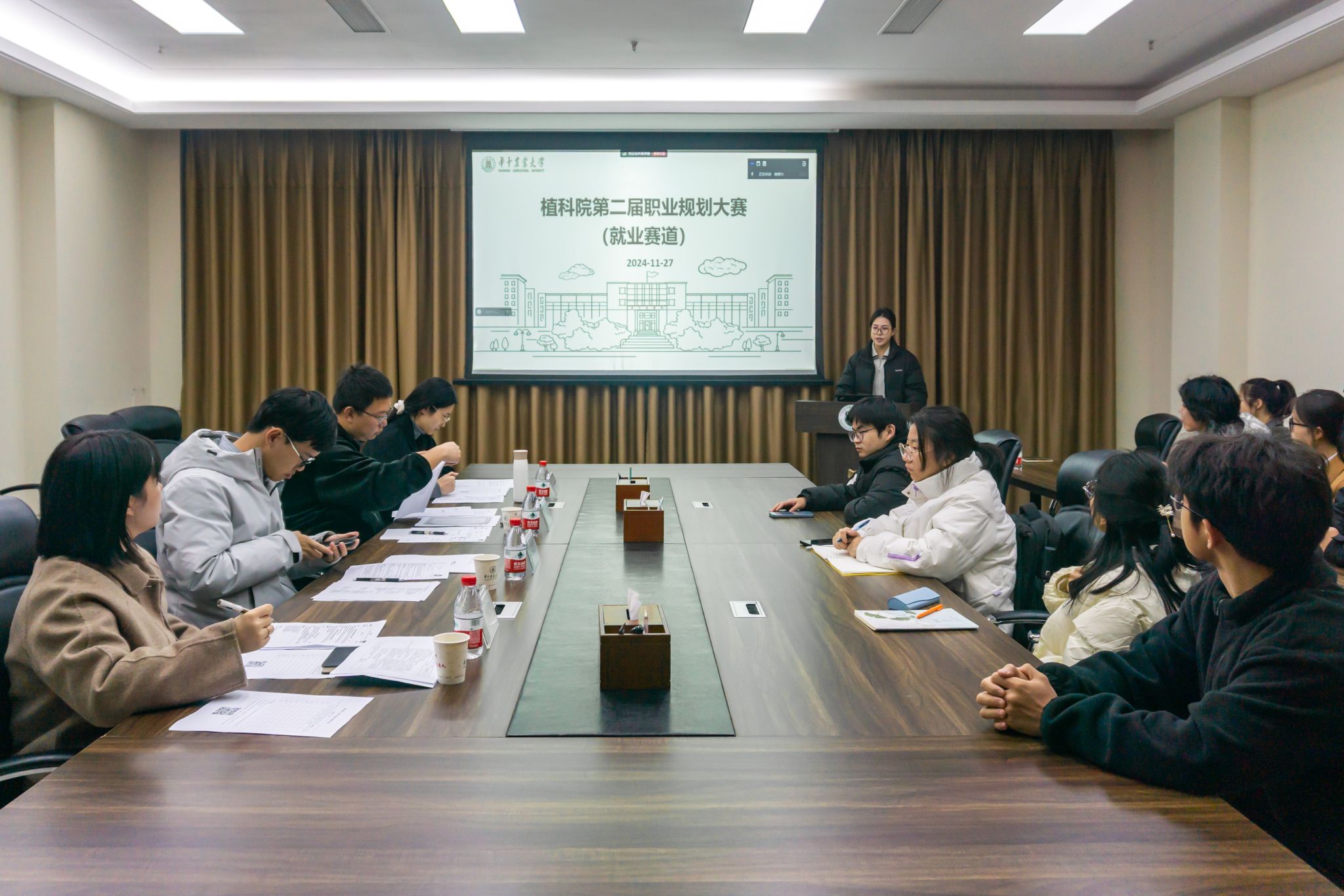 在三综B308会议室举办第二届大学生职业规划大赛,共有24名本科生和研究生分别参加“成长赛道”和“就业赛道”展开比拼。