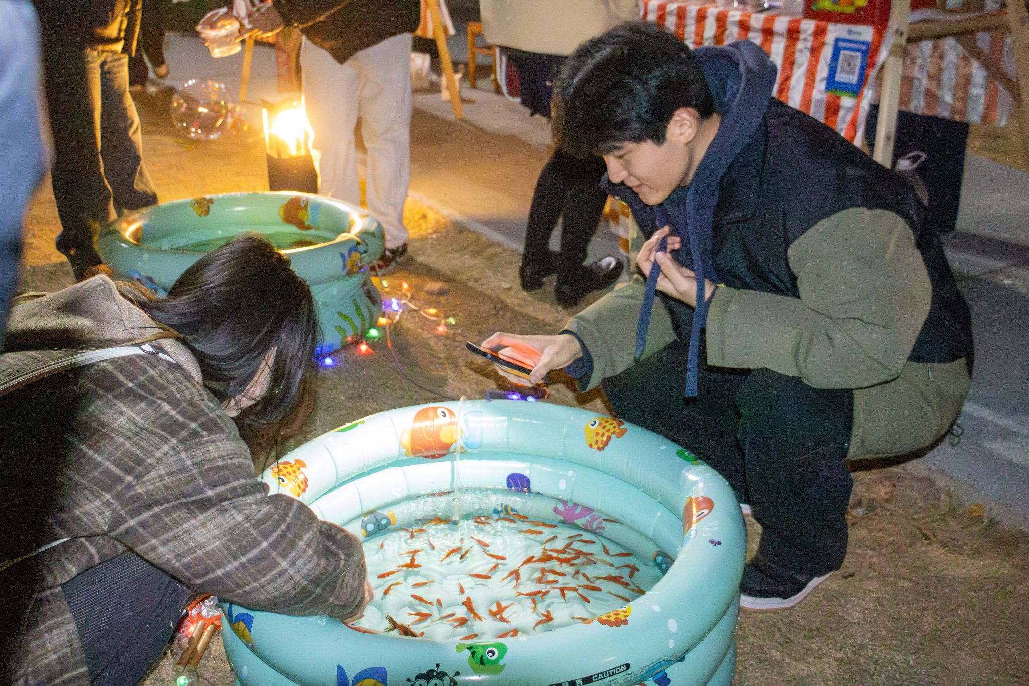 在狮山欢乐节,多元文化相互交融,开启别样新年之旅。“苔艺空间植物创意工作室” 摊位,同学们可探索方寸间的自然之美,亲手制作苔藓生态微景或水族生态瓶,将一抹绿意带回家;“果核宇宙 — 非遗手作体验馆” 中,大家利用废弃果核与种子,结合非遗技艺,创作出独具匠心的手工艺品,在变废为宝中传承文化;“狮山下石榴红” 民族文化展里,各民族经典服饰、舞蹈、手工艺品及装饰品琳琅满目,展现着五十六个民族的独特风情;“生命绽放 —— 标本艺术与观赏虫宠” 活动带领师生走进昆虫世界,透过精美标本与活体互动,感受生命奇妙与自然伟力。