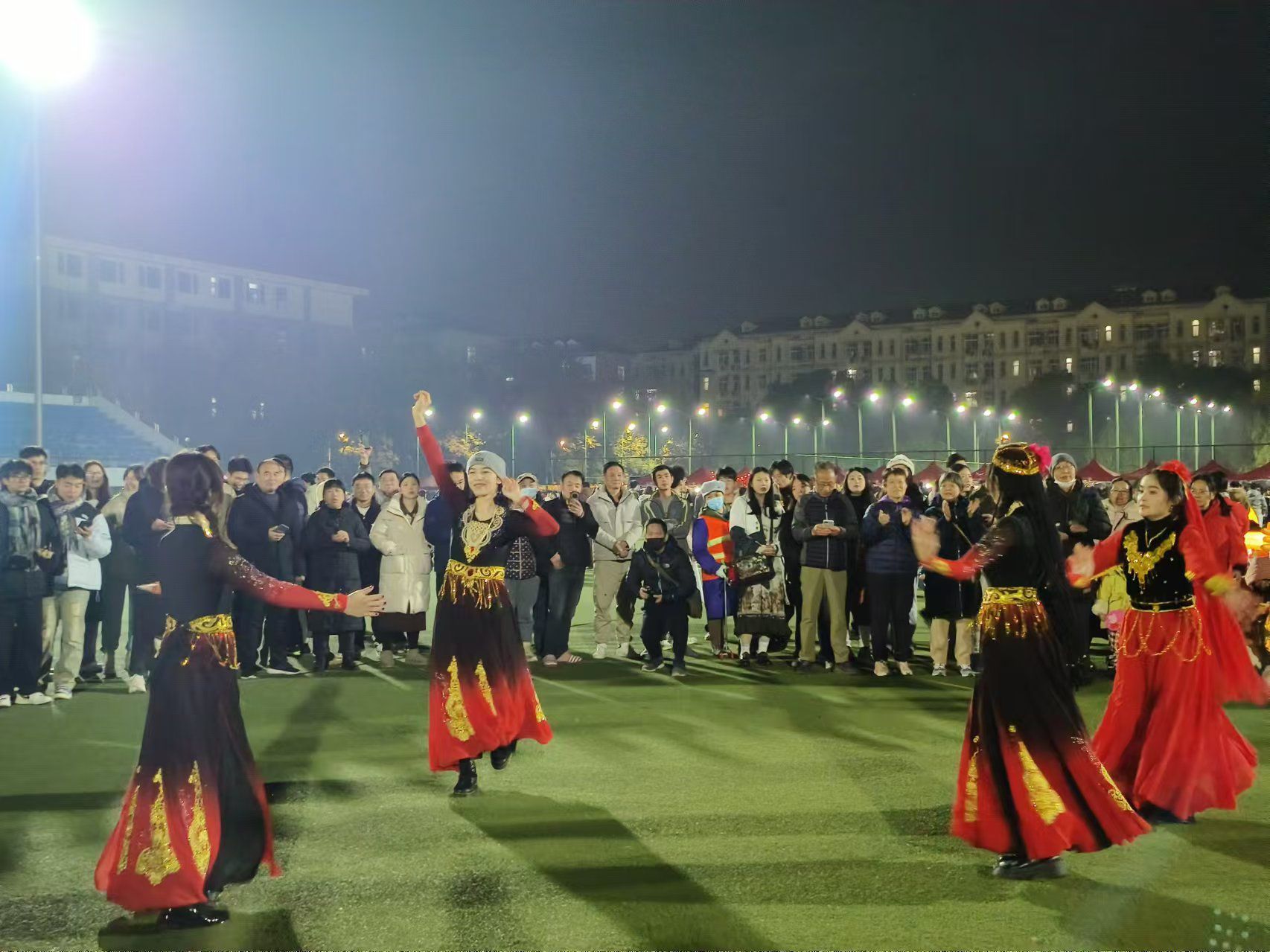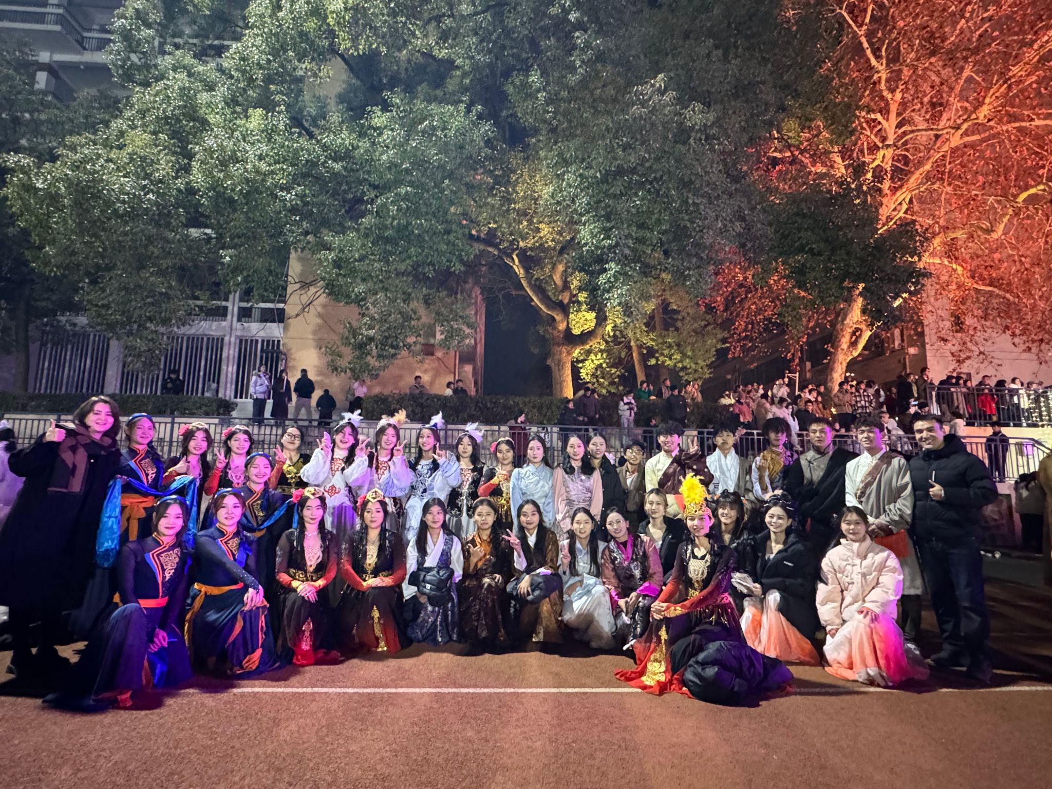 “在这欢乐的跨年时刻,我们邀请了藏族、维吾尔族、蒙古族、哈萨克族及汉族的同学,为大家呈现一场精彩的舞蹈盛宴。”“多元共舞,欢乐跨年” 项目负责人普布片多介绍道。舞台上,各民族特色舞蹈轮番登场,尽显独特文化魅力。活动还设置互动环节,邀请观众上台学习民族舞蹈动作,一同分享欢乐。在所有民族舞蹈结束后,全体参演同学共同演绎《美丽中国》,各民族学生代表上台用本民族语言向全校师生送上新年祝福,为活动画上圆满句号。
