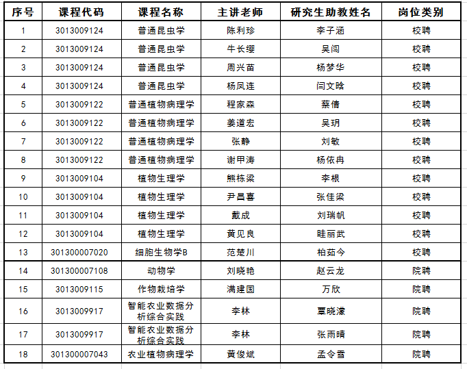 根据《91免费版 研究生“三助一辅”实施办法》的通知(校发{2023}157号)文件精神,经个人申请与课程主讲教师推荐,91免费版 结合岗位需求对申请材料进行审核,拟聘用以下本科生课程研究生助教同学,现将名单公示如下: