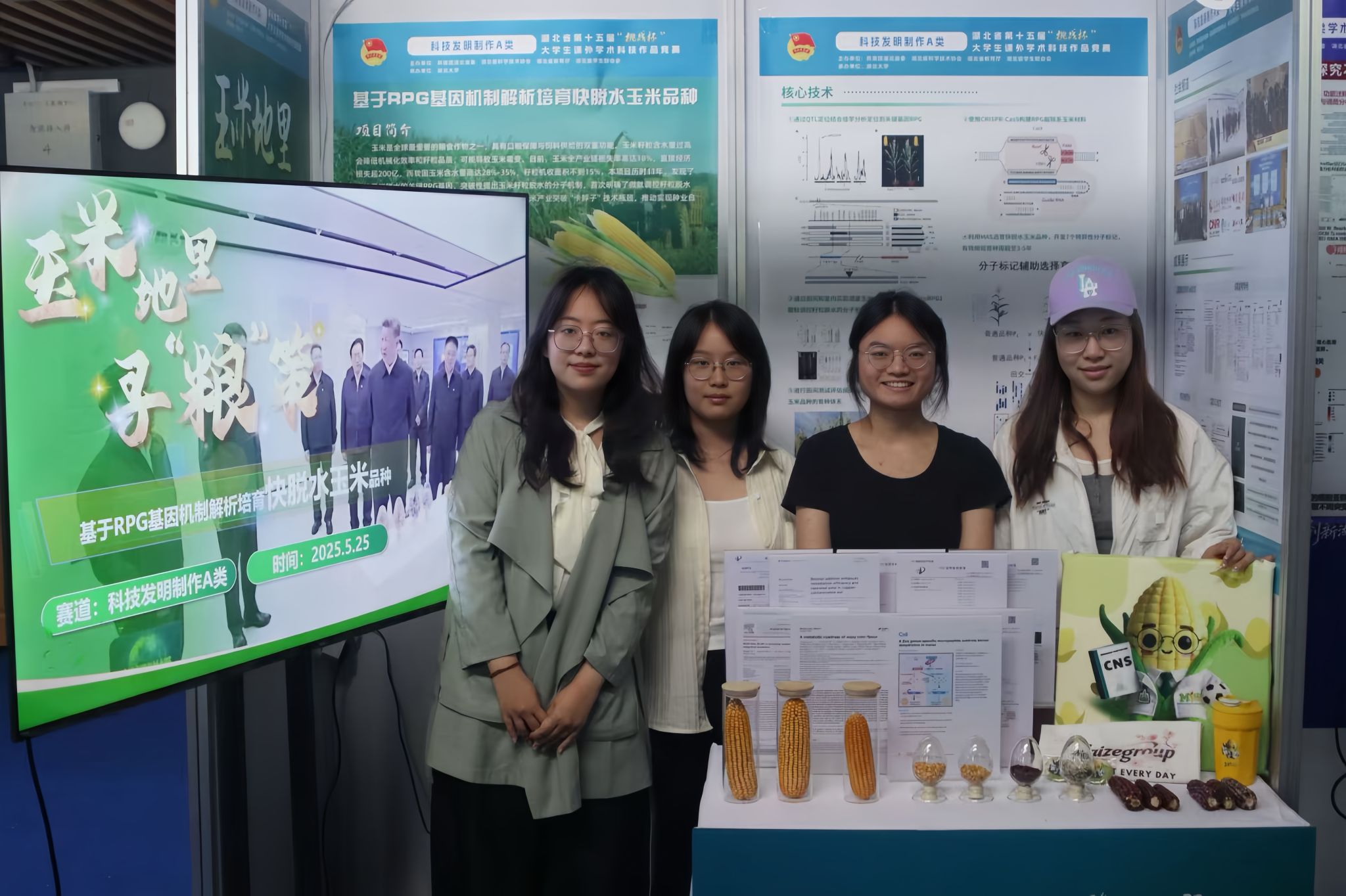 近日,在湖北大学举行的“创新湖北•青力青为”湖北省第十五届“挑战杯”大学生课外学术科技作品竞赛圆满落幕。院选送的作品《基于RPG基因机制解析培育快脱水玉米品种》从众多科学发明制作作品中脱颖而出,荣获省级一等奖。