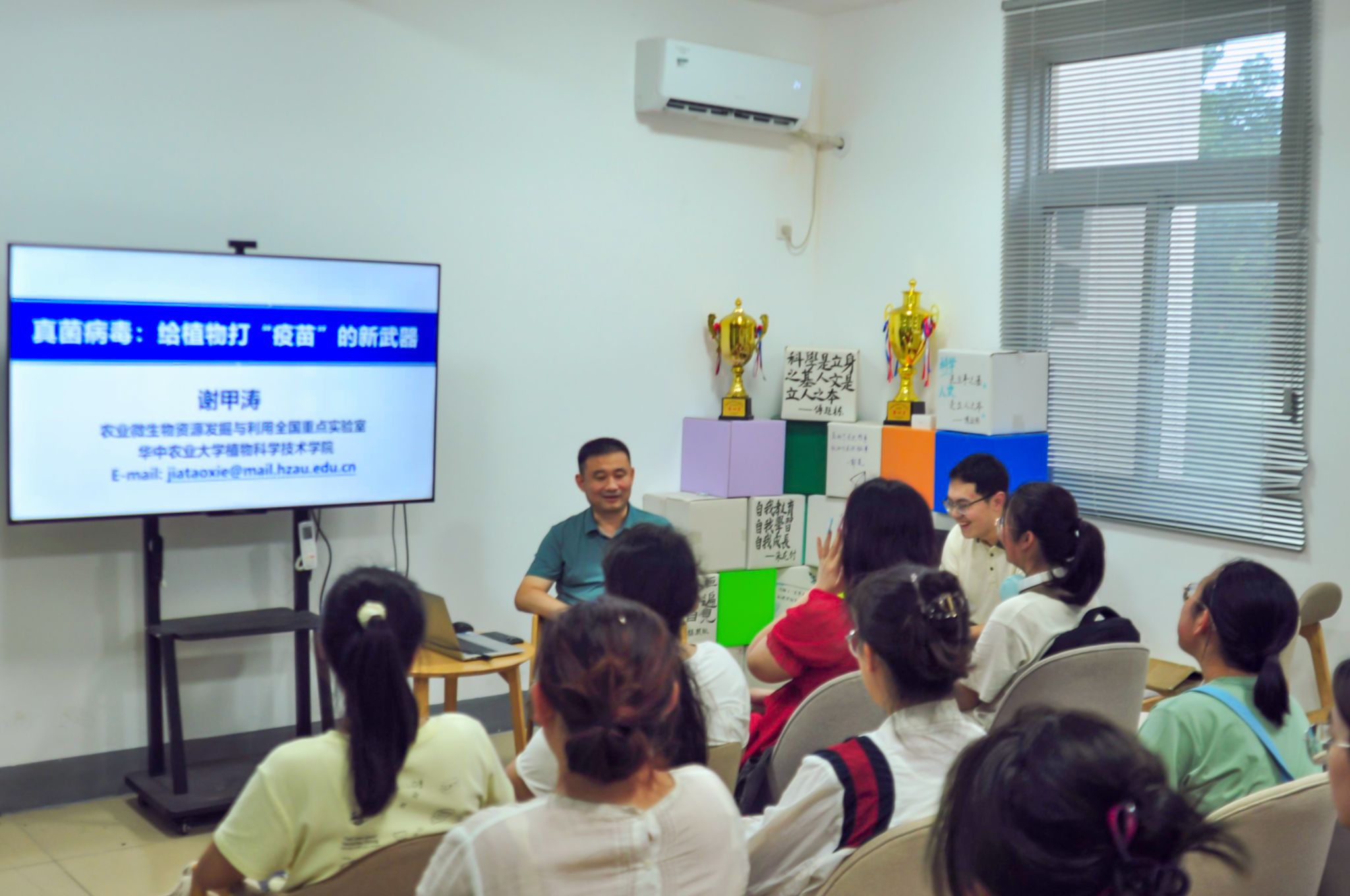 谢甲涛教授以“真菌病毒:给植物打‘疫苗’的新武器”为主题,与现场20余名同学分享这一前沿领域的研究成果。