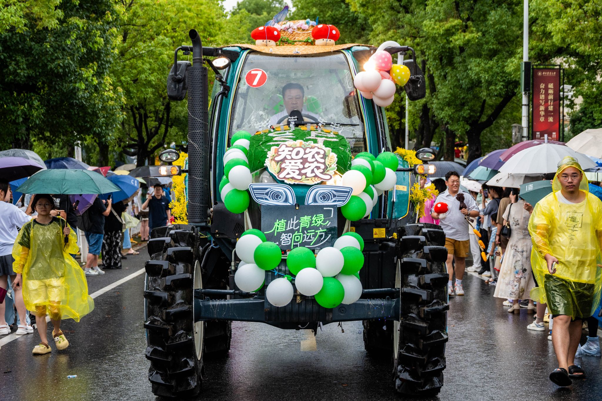 种工2101班毕业生宋宏升感慨:“看着这辆满载智慧与农业元素的花车缓缓前行,我仿佛看到了农业科技的未来。在雨中跟随花车巡游,雨水虽打湿了衣衫,却浇不灭我内心的炽热。四年的学习时光让我深知农业人的责任,如今即将毕业,我定会带着母校赋予的知识与力量,践行‘知农爱农’的誓言,在农业这片广阔天地里拼搏奋斗,让青春在田野上绽放光彩!”