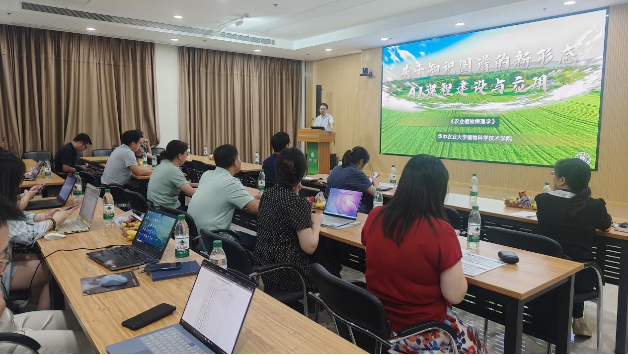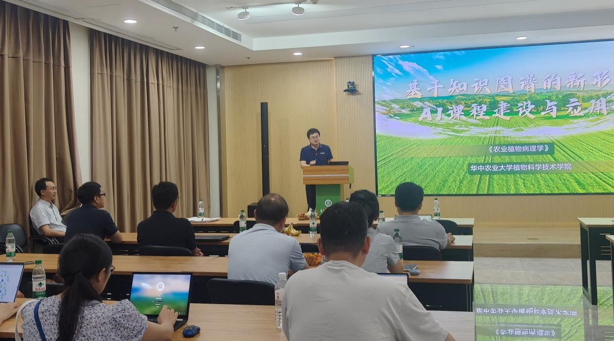 罗朝喜对智慧树一行表示欢迎,他围绕《农业植物病理学》AI课程建设与应用展开分享,该课程以能力培养为核心,设置3大能力目标,通过“八步建设法”实现知识体系、教学资源与测评方式的关联,打造个性化学习“引擎”,已在2024年春夏学期、2025春夏学期共面向8个班级256名学生运行,依托AI助教、学情洞察等工具,实现了精准教学与自适应学习。