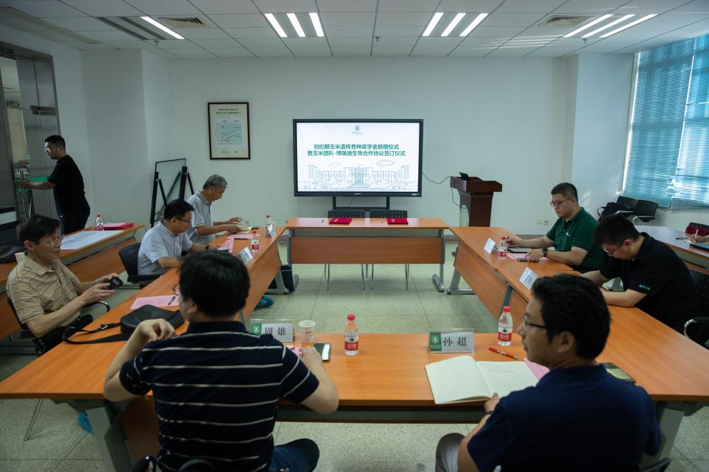 9月19日上午,“刘纪麟玉米遗传育种奖学金”捐赠仪式在作物遗传改良全国重点实验室C203举行。