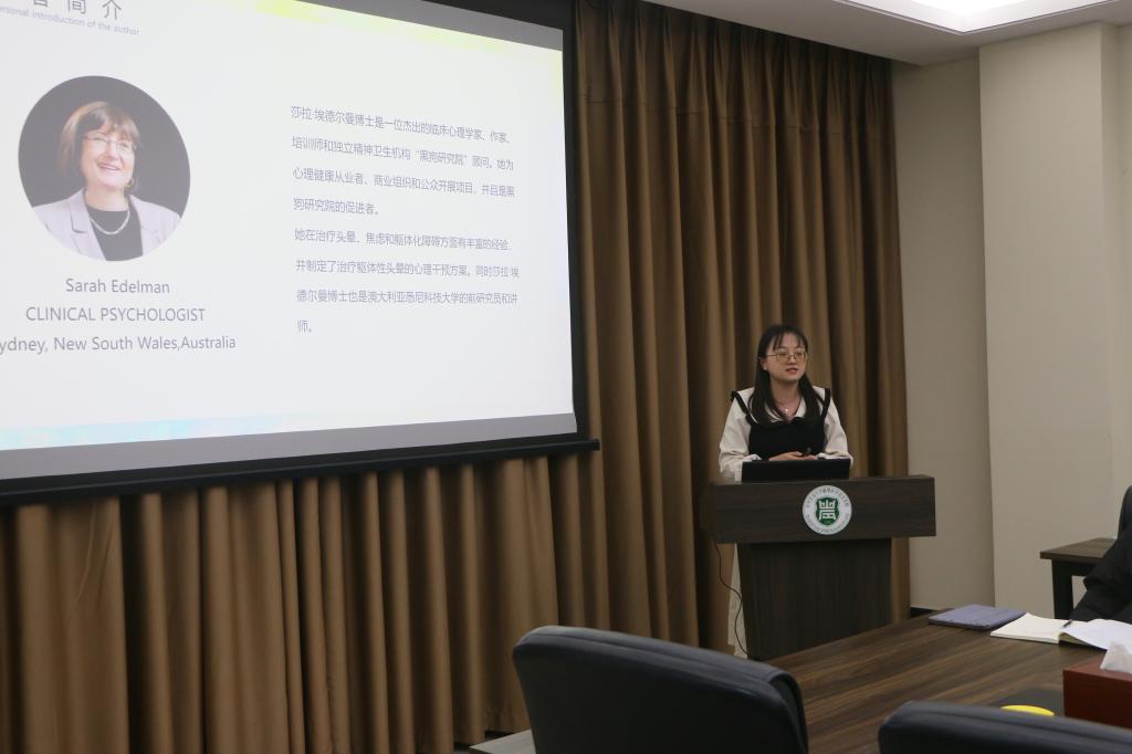 谢天依同学分享了一本心理学读物《胡思乱想消除指南》,它是一本认知行为疗法的百科全书,结合了理论与实操,让没有学习过心理学的人也可以轻易读懂认知行为疗法的概念,且每一种症状都能找到对应的解决方法和实操工具。她认为,通过这本书了解认知行为疗法,可以帮助我们发展合理、均衡的认知,以对生活中的挑战做出恰当的反应。
