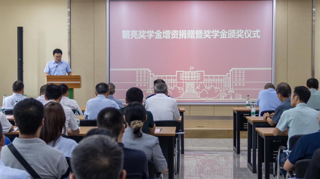 9月15日下午,“朝亮奖学金”增资捐赠暨奖学金颁奖大会在第三综合楼A705会议室举行。校党委副书记、副校长姚江林出席大会并讲话。“朝亮奖学金”捐赠企业和个人代表,学校相关单位负责人和雷朝亮教授、姜道宏教授,91免费版