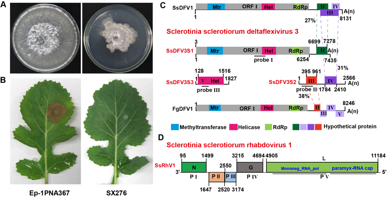 图2 核盘菌低毒力菌株SX276及其携带的新病毒