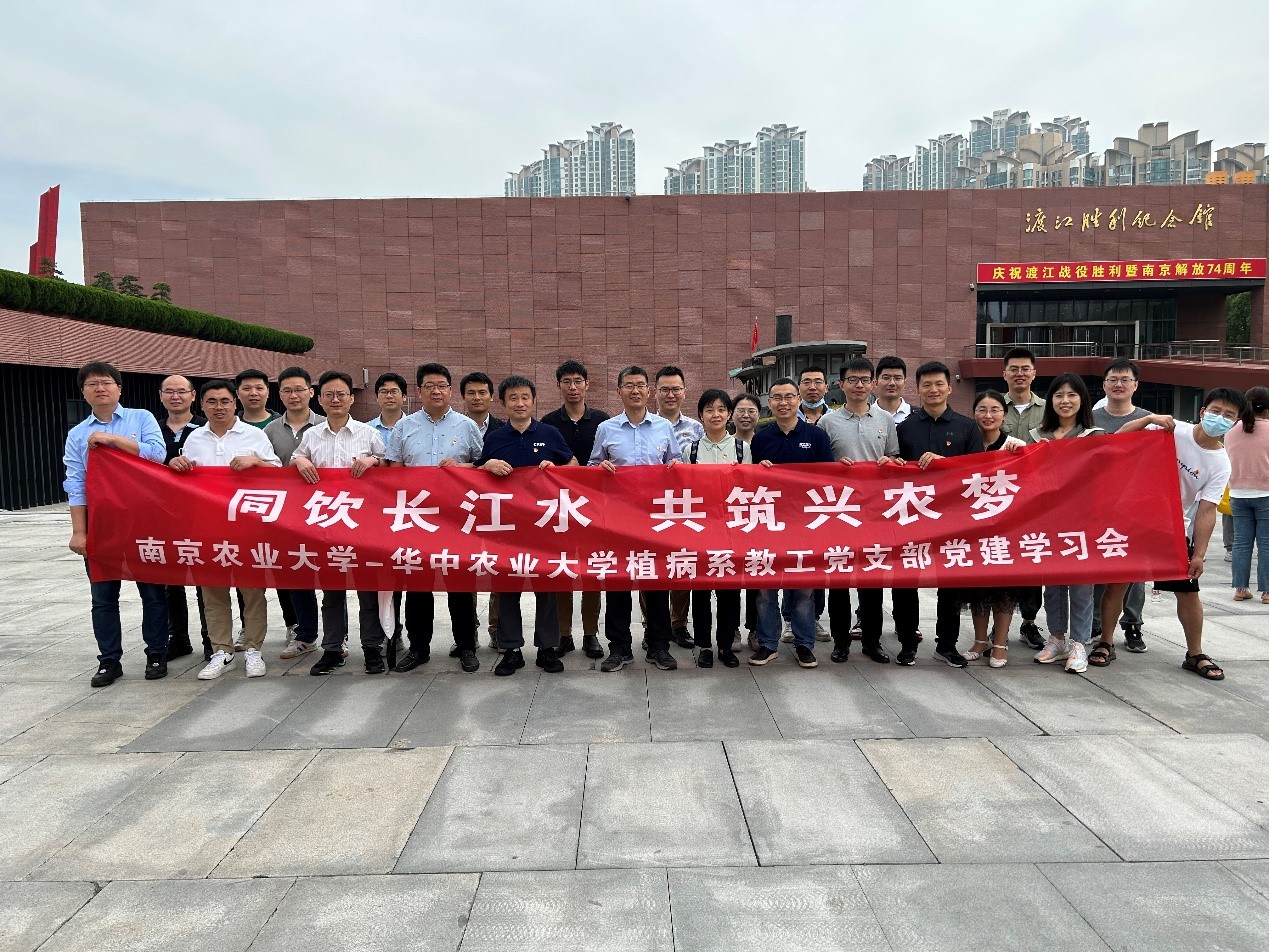 5月20日上午,两校植物病理教工党支部成员和教师代表围绕“同饮长江水,共筑兴农梦”的主题进行了党建交流活动,并一同参观了南京渡江胜利纪念馆。期间热烈讨论了习近平总书记给中国农业大学科技小院的学生回信,就党建引领教学科研高质量发展的举措和方法进行了探讨与交流。最后,双方党支部举行了赠书仪式,希望支部青年教师在做好科研的同时,不断加强理论政治学习。
