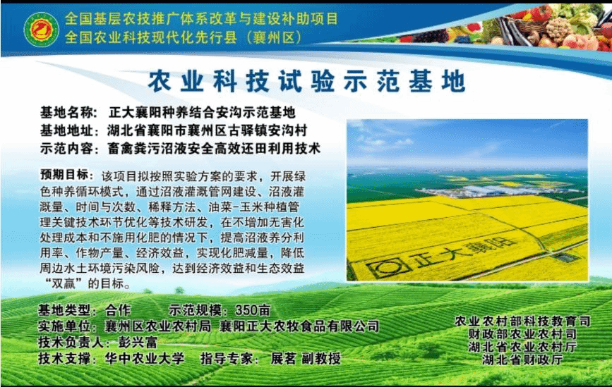 此次交流中,襄阳正大对取得的阶段性工作成效给予了肯定,双方将继续合作共同探索种养结合的新模式和新技术,为推动襄阳养殖业与种植业协同可持续发展做出应有贡献。该试验示范基地获得了襄州区农业农村局“2023年科技示范基地“荣誉称号。