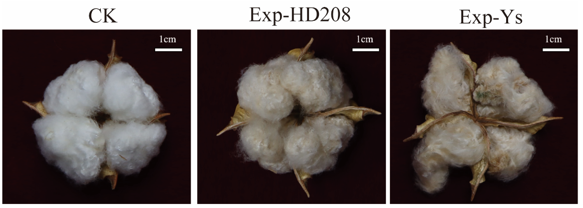 图1. pGbEXPA2 驱动Gh_TT2Ys 和Gh_tt2HD208表达产生棕色纤维