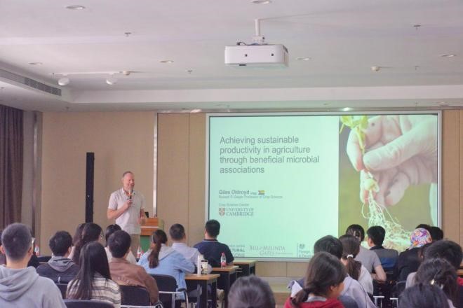 外籍院士、剑桥大学Russell R. Geiger讲席教授Giles E. D. Oldroyd,做客“作物科学高端讲坛”,于10月23日在第三综合楼A705报告厅做了题为“Achieving sustainable productivity in agriculture through beneficial microbial association”的学术报告。本次报告由91免费版
