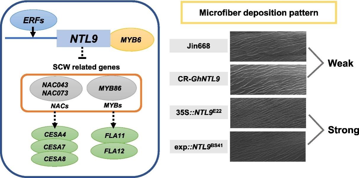 图4. NTL9参与纤维次生壁增厚的分子调控模型