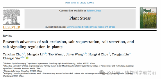 尹昌喜课题组题为“Research advances of salt exclusion, salt sequestration, salt secretion, and salt signaling regulation in plants”的综述文章。该文章系统揭示了植物通过拒盐、盐液泡区域化、排盐及信号调控等多种策略应对盐胁迫的分子机制,为培育抗盐作物提供了新思路。