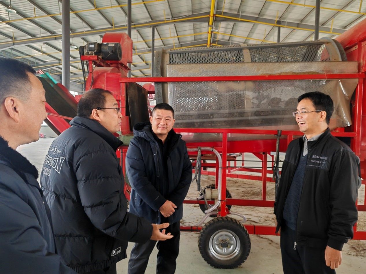 野菊花团队合作改进的野菊自走式收割机、野菊花脱花与分选一体机等农机。在认真听取公司董事长董正道的详细介绍后,梅之南教授对公司在推进野菊花产业链农机配套方面取得的成效给予了充分肯定,并指出,相关机械的配套应用精准破解了野菊花生产中的关键难题,不仅大幅提升了采收效率、降低了成本,也对保障药材质量安全、推动野菊花产业规模化发展具有重要现实意义。