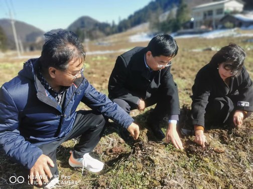 调研期间,专家团队在湖北吉昌药业有限公司董事长龙祥云的陪同下,先后走访了该公司以及利川市勤隆中药材专业合作社位于元堡乡复兴村、忠孝村的药用大黄种植基地。团队成员实地考察了大黄越冬期的田间管理情况,随后听取了龙祥云董事长及大黄种植大户现场反映的生产难题——即连续种植大黄后出现的产量下降、品质劣化,以及更为严重的根腐病导致的绝产问题。