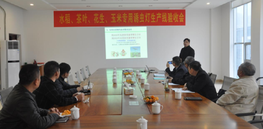 专家组在经过听取汇报、现场检验和质询答疑等环节后,一致同意通过“水稻害虫、茶叶害虫、玉米害虫和花生害虫陷阱式专用诱虫灯生产线”验收,评价其研究技术符合害虫绿色防控理念,居国际领先水平。