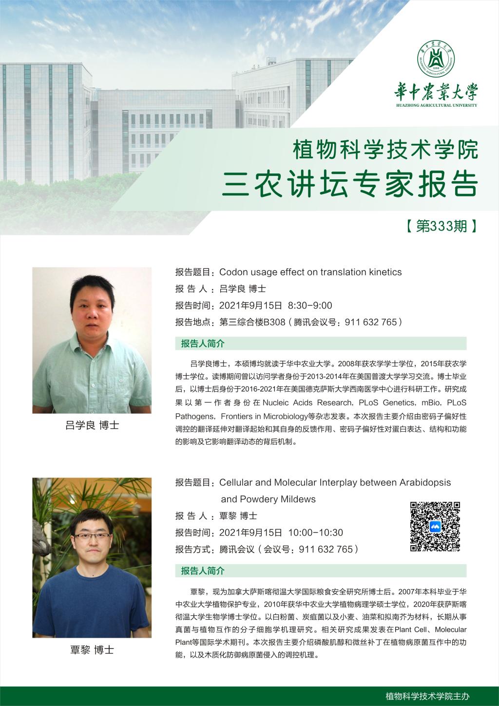 三农讲坛(吕学良博士;覃黎博士)