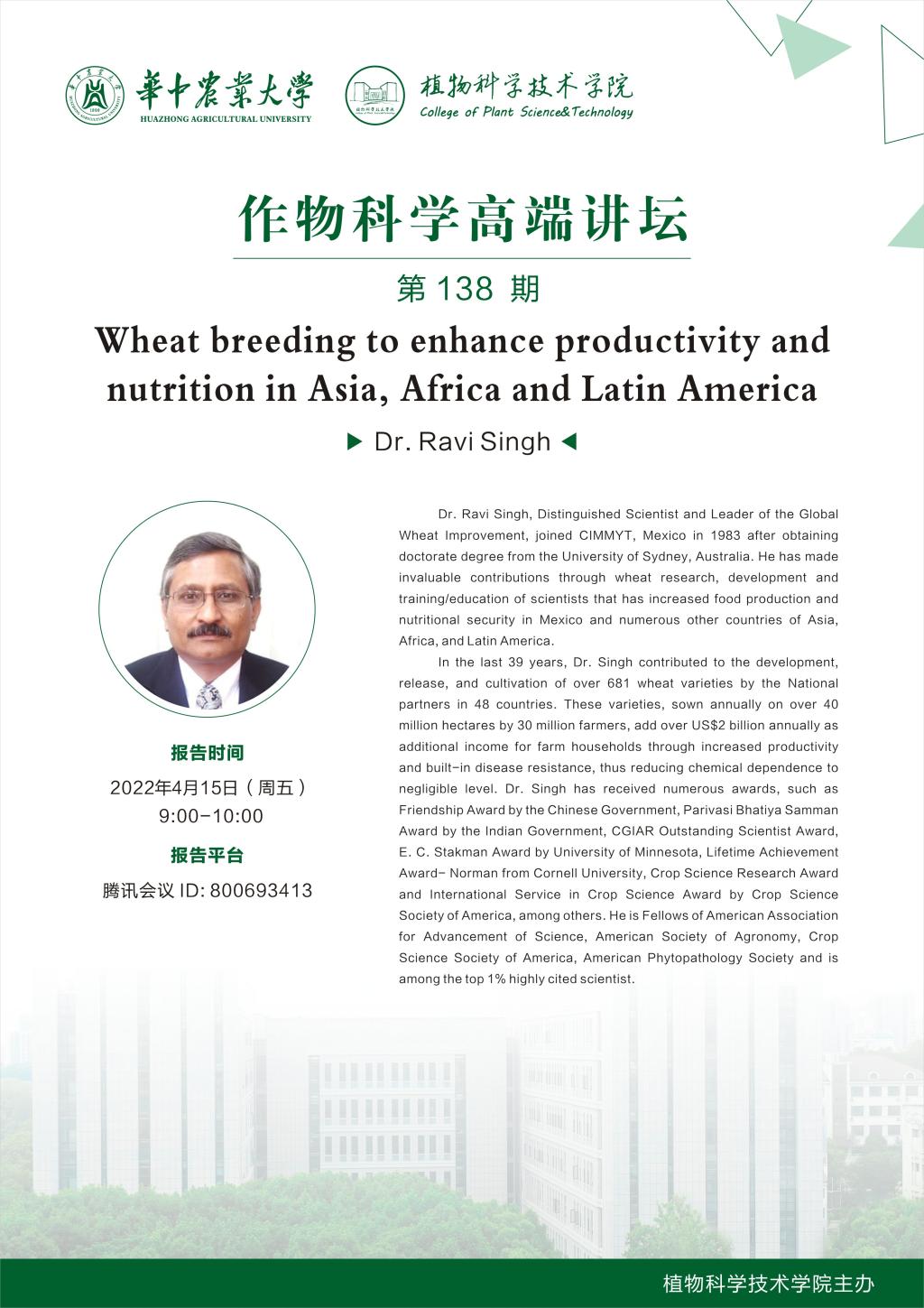 作物科学高端讲坛(第138期)