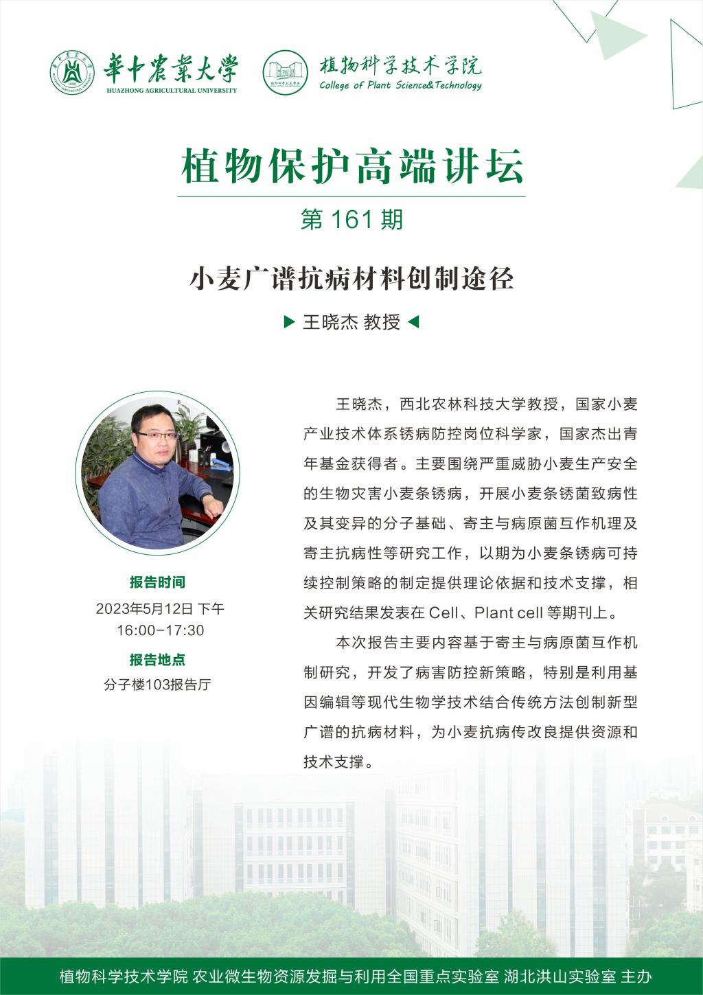 植物保护高端讲坛(王晓杰 教授)