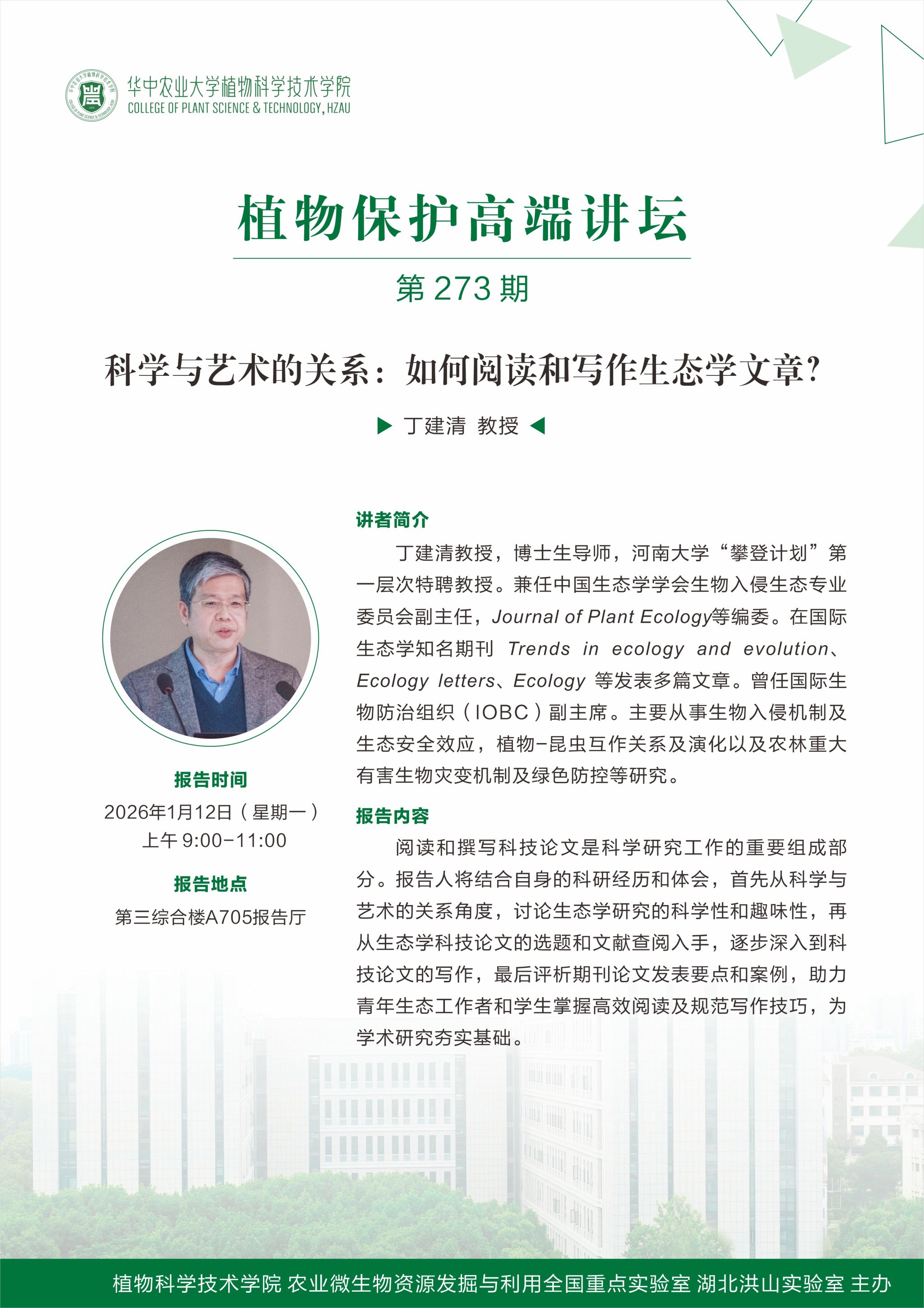 科学与艺术的关系:如何阅读和写作生态学文章?(丁建清 教授)