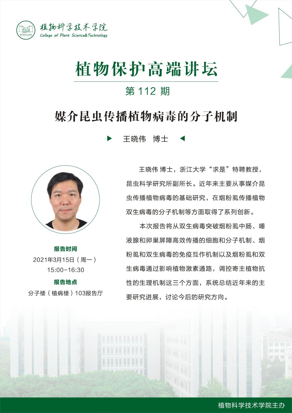 植物保护高端讲坛(王晓伟 博士)