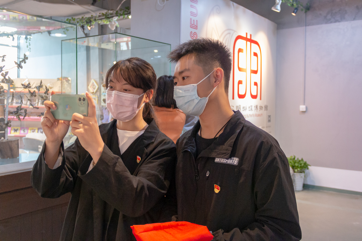 在博物馆学习时,馆长谌安明也来到了现场,为大家进行了详细的讲解,并通过播放纪录片的方式向大家讲述了自己收集蝴蝶的经历。谌馆长从小学起就对蝴蝶充满兴趣,后来更是花费十年的时间去世界各地寻找和观察不同的蝴蝶,其中不乏坎坷与艰辛。对于现在蝴蝶的研究,谌馆长指出了两点问题,一是现在环境污染较为严重,蝴蝶栖息地被破坏,导致蝴蝶种类和数量都大幅减少;二是现在的人对蝴蝶的了解程度都较低。谌安明表示,希望通过向人们展示蝴蝶的美和蝴蝶发育的过程,能够引起大家对蝴蝶的关注以及对环境的重视。“我在学校里的研究方向也是蝴蝶,所以在发现很多同学对这些极易被忽视的仙子们充满兴趣时,我感到非常欣喜”,何星毅表示,“那一刻,我觉得我的研究很有意义。谌安明先生对待蝴蝶的行为与态度坚定了我未来的道路,也让我看见了我国未来人与生态和谐共处的美景。”