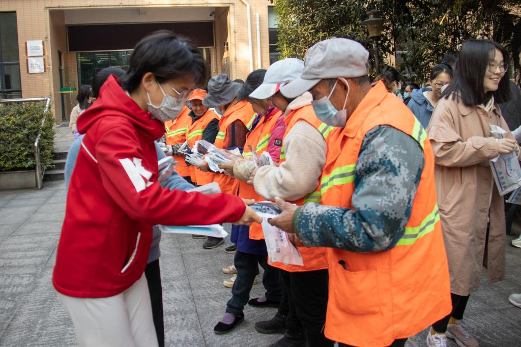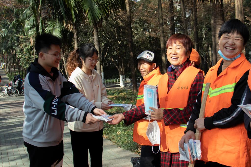 活动中,支部成员还就感兴趣的话题与环卫工人交流,并在最后将精心准备好的冬季手套和口罩赠送给在场的环卫工作人员以表敬意。
