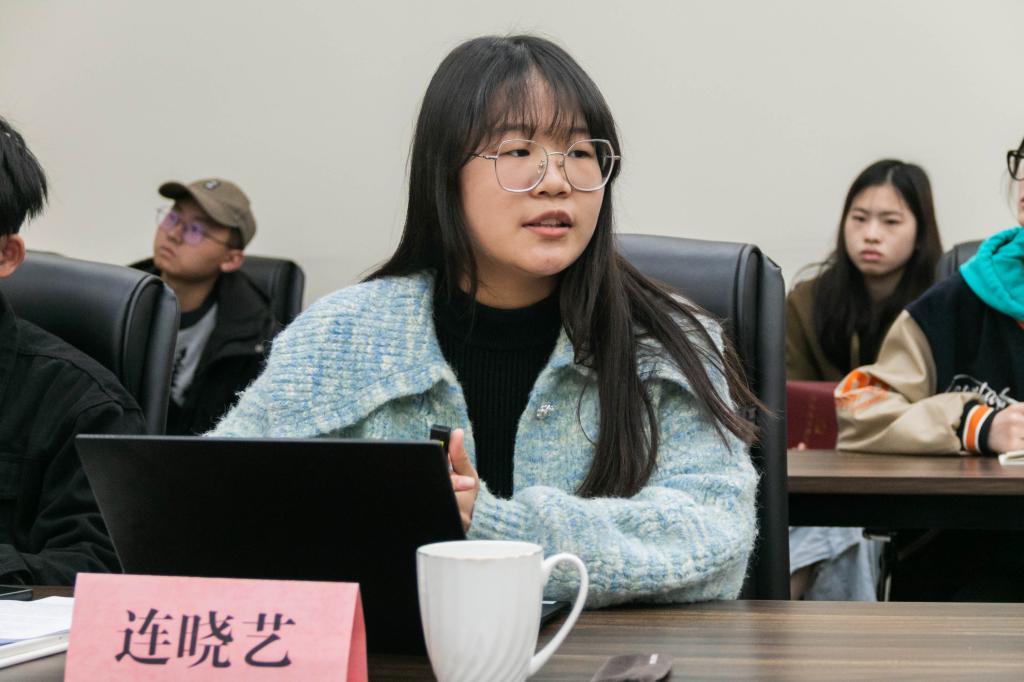 随后,连晓艺以“我与社会实践”为主题,从“什么是社会实践”,“暑期社会实践流程”,“优秀案例”以及“个人想法分享”四个方面展开她的分享。作为社会实践部的负责人,连晓艺以自己的实践经历鼓励大家多去看山看水看世界,她表示,要不断地挖掘社会实践的意义,把对祖国的热爱融入青春。以实际行动展现新农人的担当。