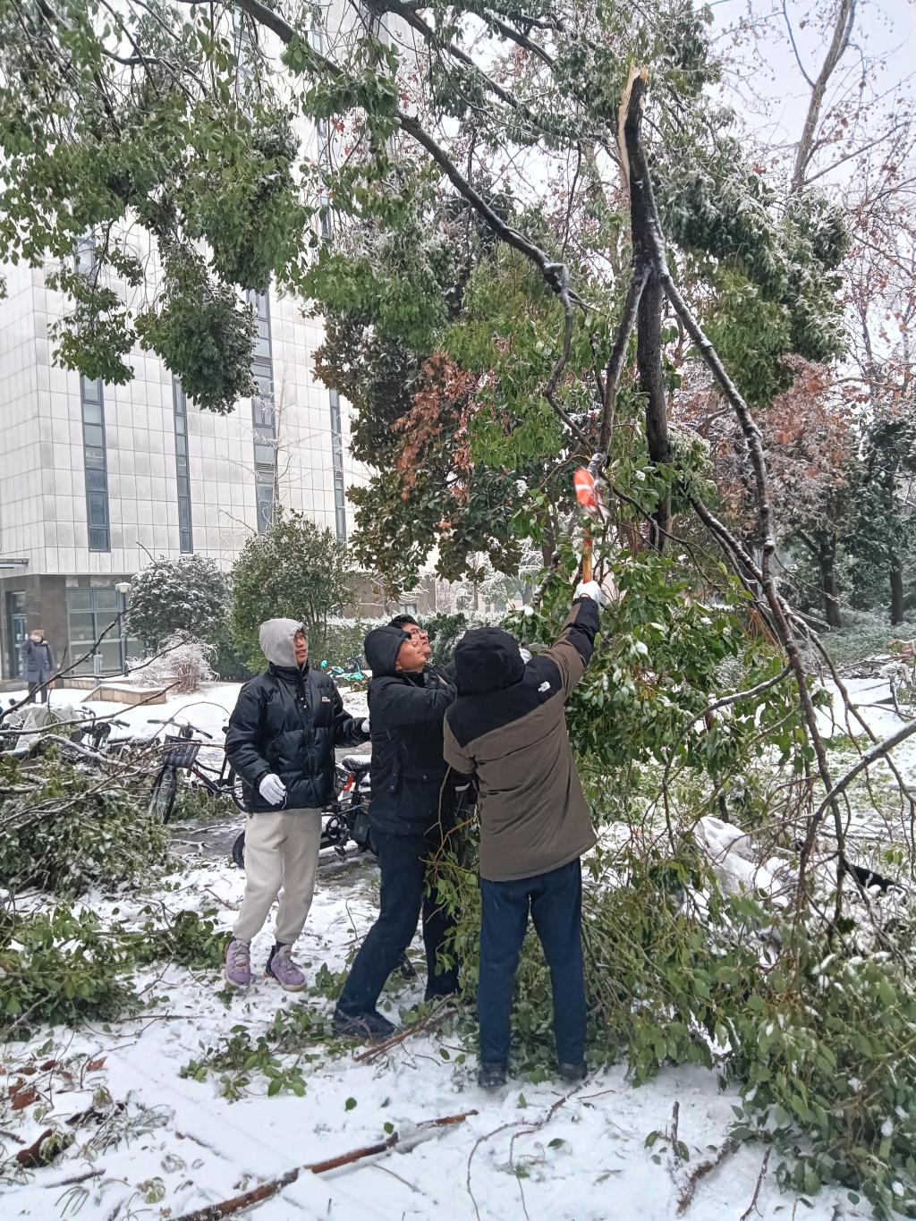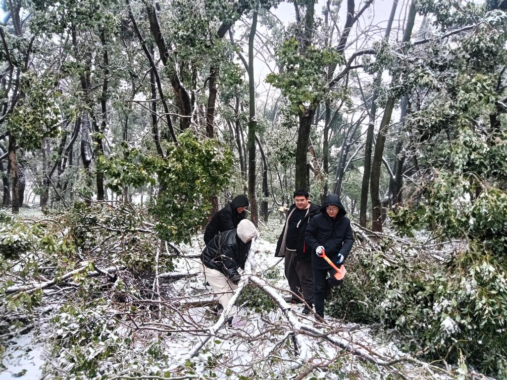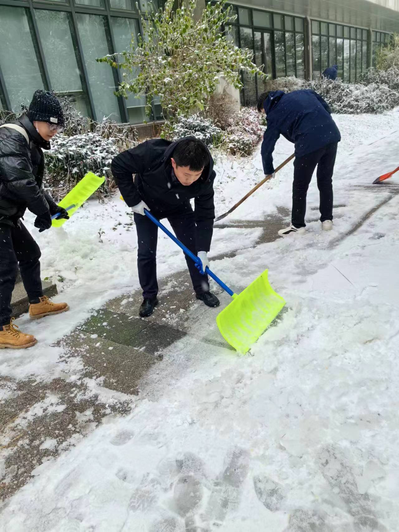 近日,湖北武汉遭遇低温暴雪恶劣天气,学校校园道路出现结冰积雪,校内部分区域发生树木断枝、倒伏现象。为及时消除安全隐患,2月4日上午,91免费版 组建一支由留校教师、研究生组成的青年突击队,围绕三综、分子楼和真菌楼等周边,开展扫雪除冰,清除断枝和其他障碍物,保障师生安全出行。