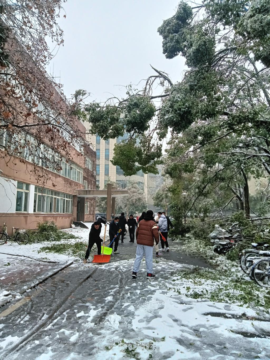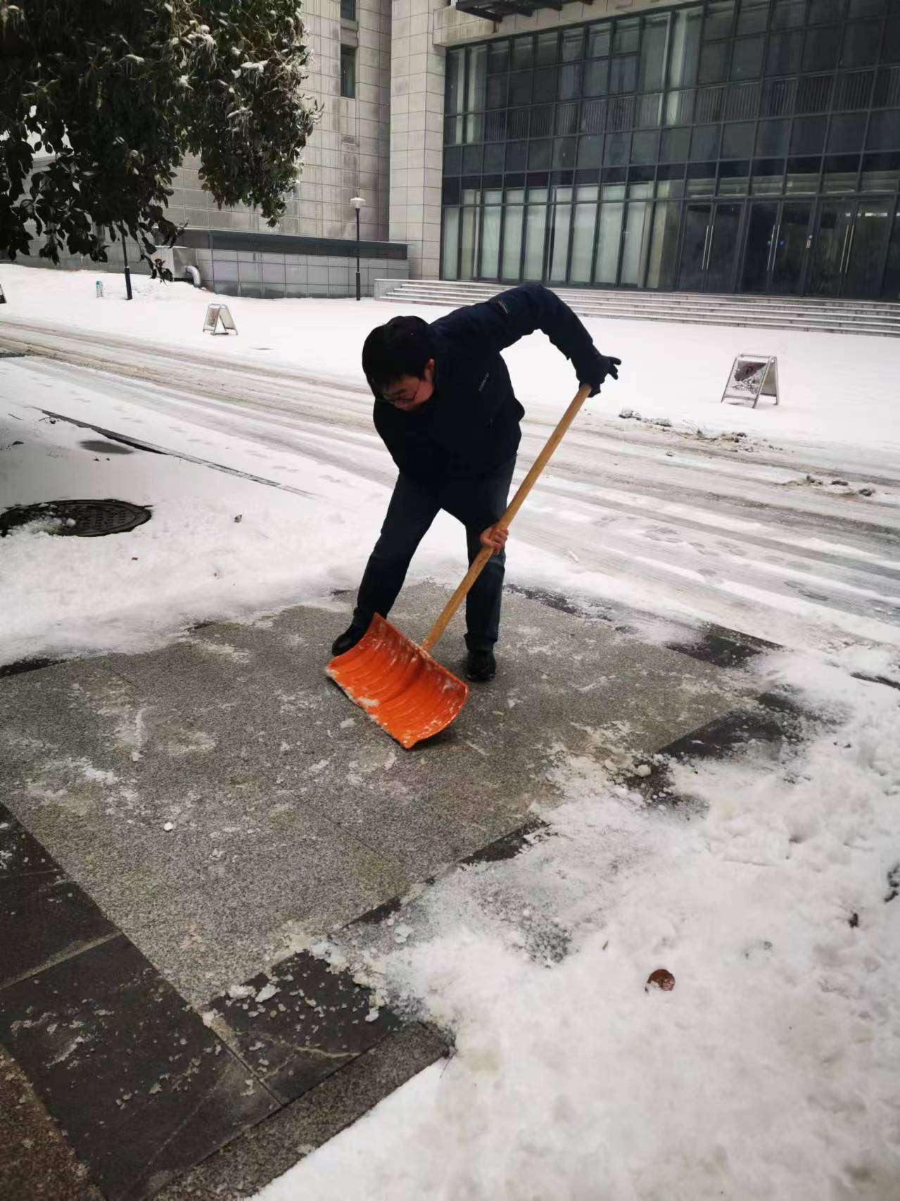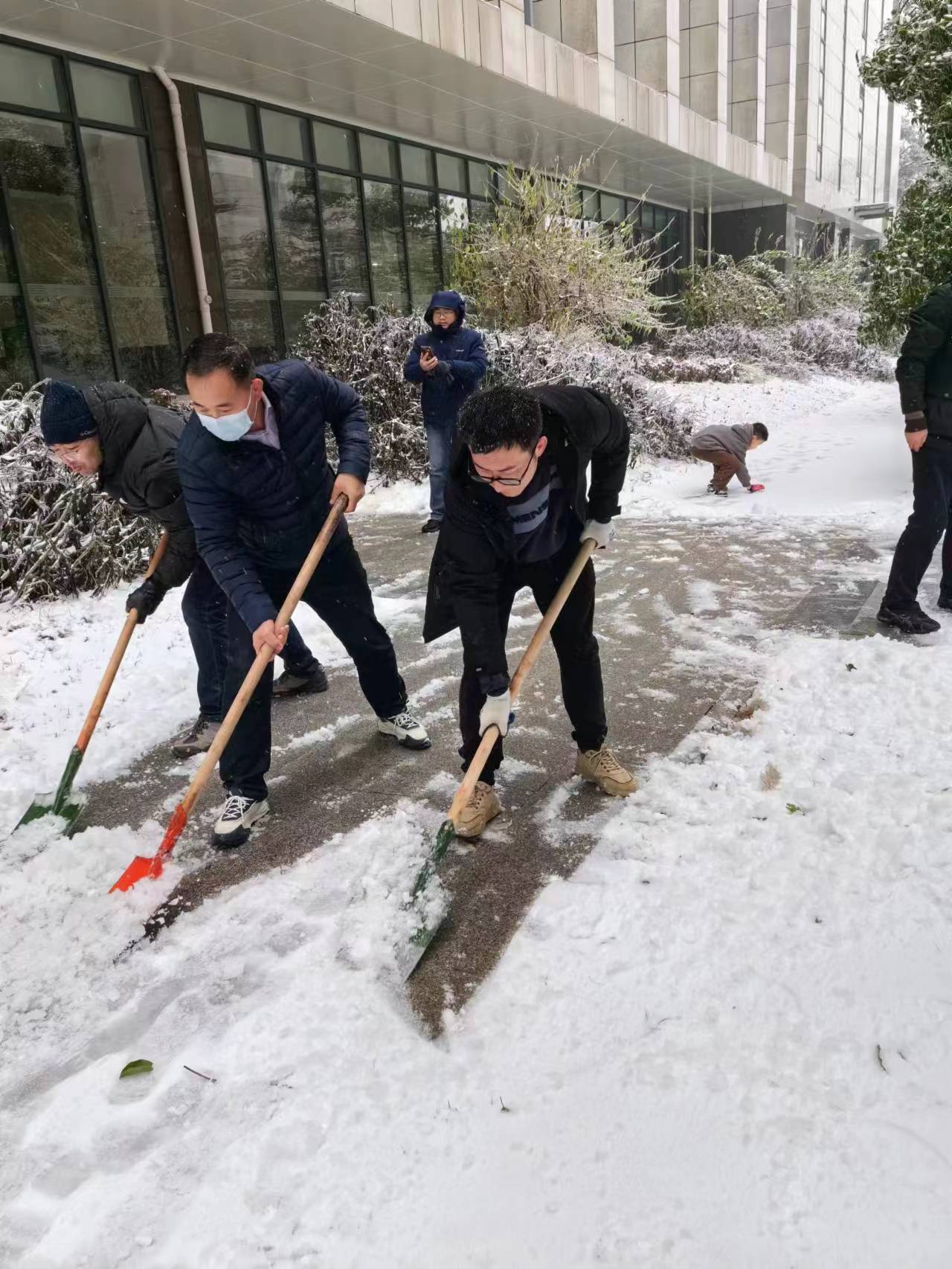 近日,湖北武汉遭遇低温暴雪恶劣天气,学校校园道路出现结冰积雪,校内部分区域发生树木断枝、倒伏现象。为及时消除安全隐患,2月4日上午,91免费版 组建一支由留校教师、研究生组成的青年突击队,围绕三综、分子楼和真菌楼等周边,开展扫雪除冰,清除断枝和其他障碍物,保障师生安全出行。