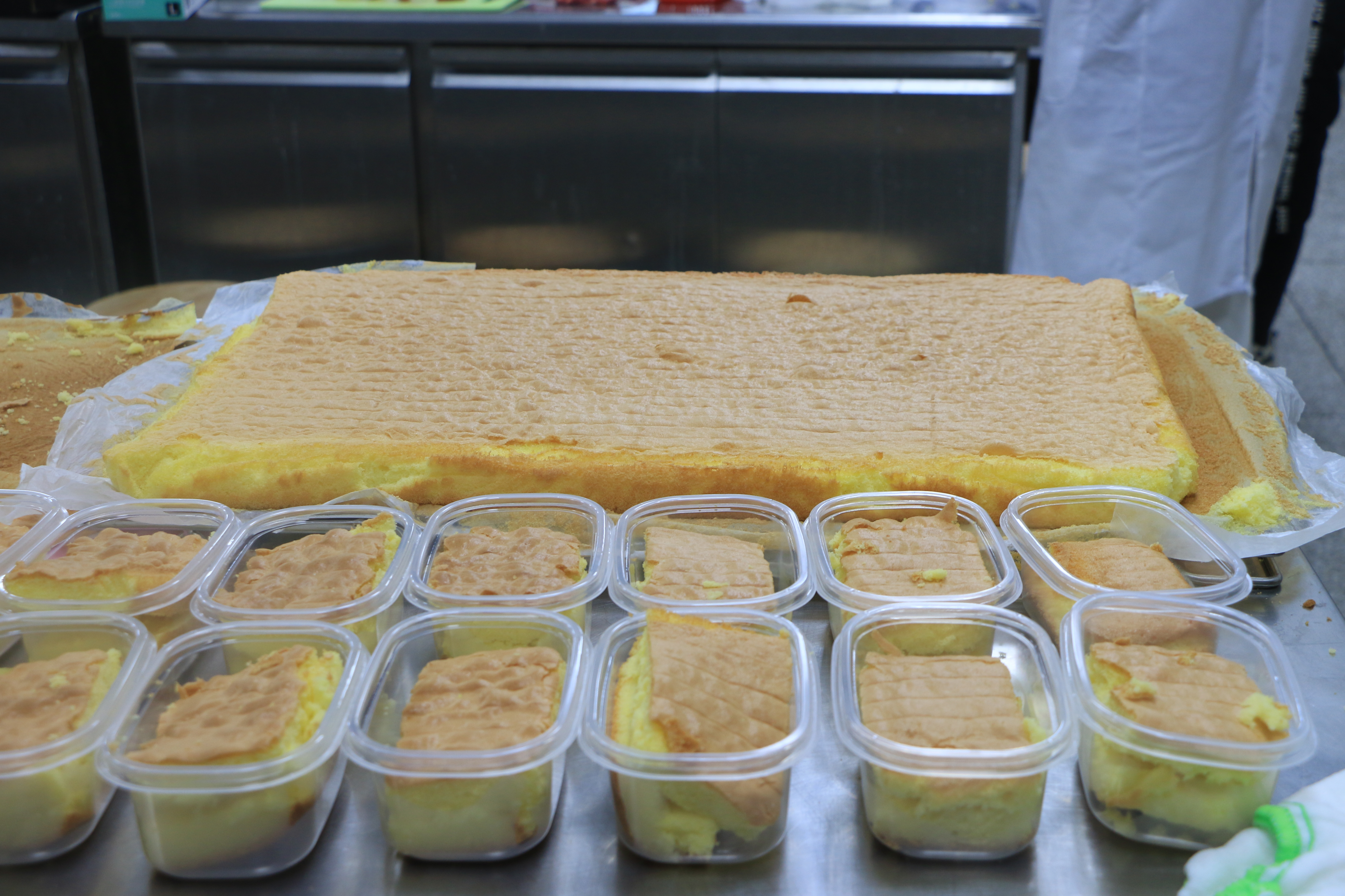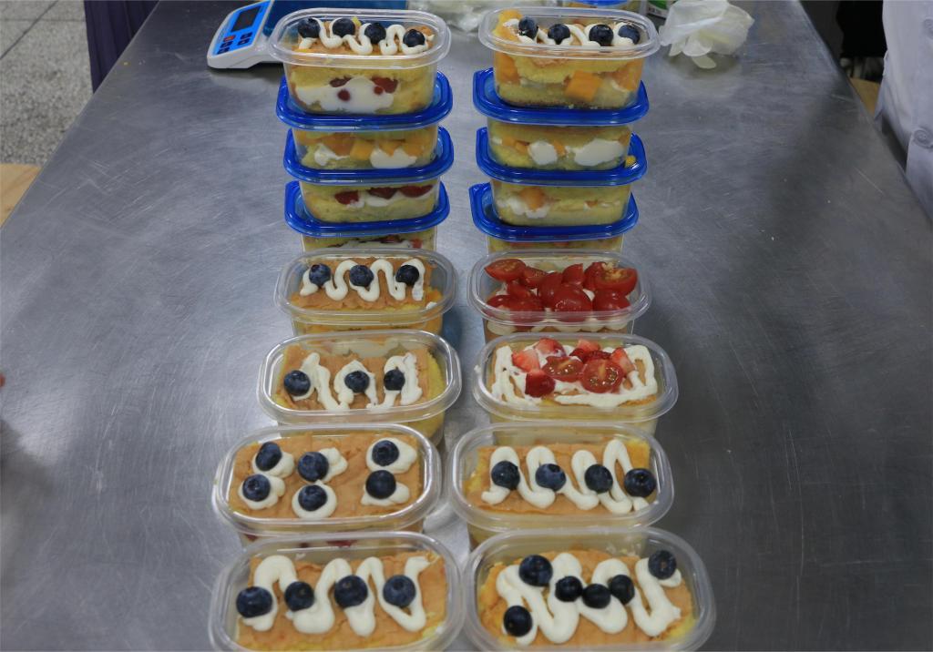 荣建华老师介绍了海绵蛋糕和麻薯的制作方法及烘焙工具的使用,并对制作流程进行了详细讲解。听完讲解,现场的老师们随机组成了六个小组,以小组为单位进行了蛋糕和麻薯的制作。大家相互配合,配备材料、搅拌、抹坯到烘烤出炉,再将蛋糕切块,充分发挥创意,精心用水果和奶油点缀,最后制作成了一盒盒漂亮精致的小蛋糕。随后,在烘培老师的指导下,老师们又成功制作出了麻薯。现场,老师们不断相互交流制作要领,关心制作进度,充满欢声笑语,气氛十分热烈,空气中都弥漫着香甜的味道。