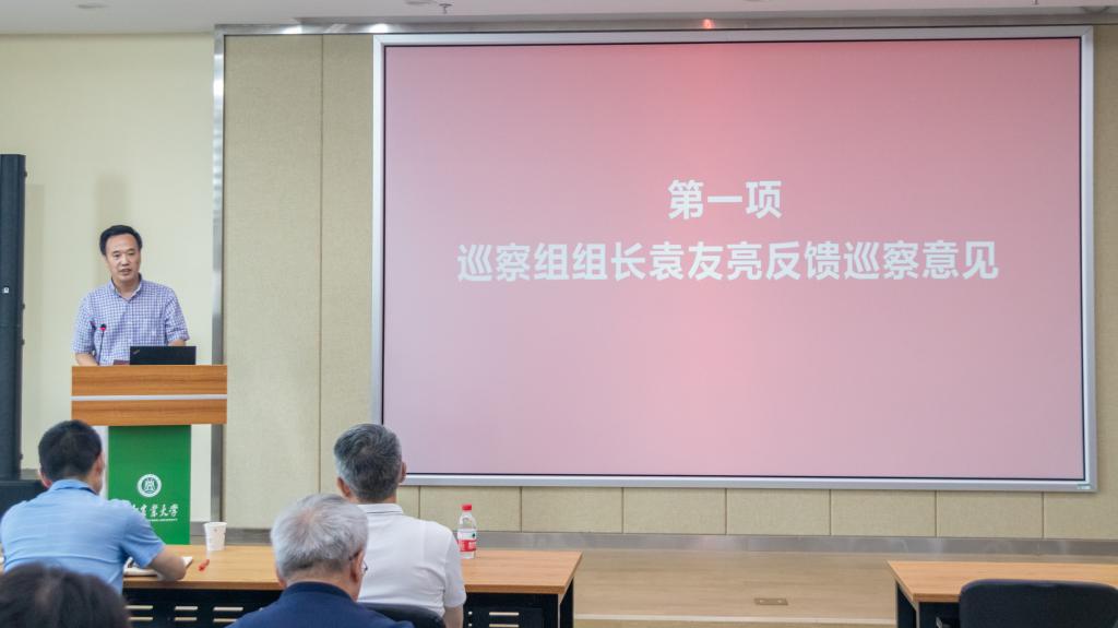 袁友亮作巡察工作情况反馈介绍了巡察工作基本情况,从上一轮校内巡察整改情况全面学习贯彻落实习近平新时代中国特色社会主义思想和党的二十大精神落实立德树人根本任务坚持和加强党的全面领导安全稳定工作责任制落实履行全面从严治党主体责任和监督责任干部和人才队伍建设组织制度执行个方面反馈了巡察发现和师生反映的主要问题。他代表学校党委第一巡察组,从坚持和加强党的全面领导深化教育、科技、人才融合创新持续强化纪律和作风建设扎实做好巡视巡察“后半篇”文章