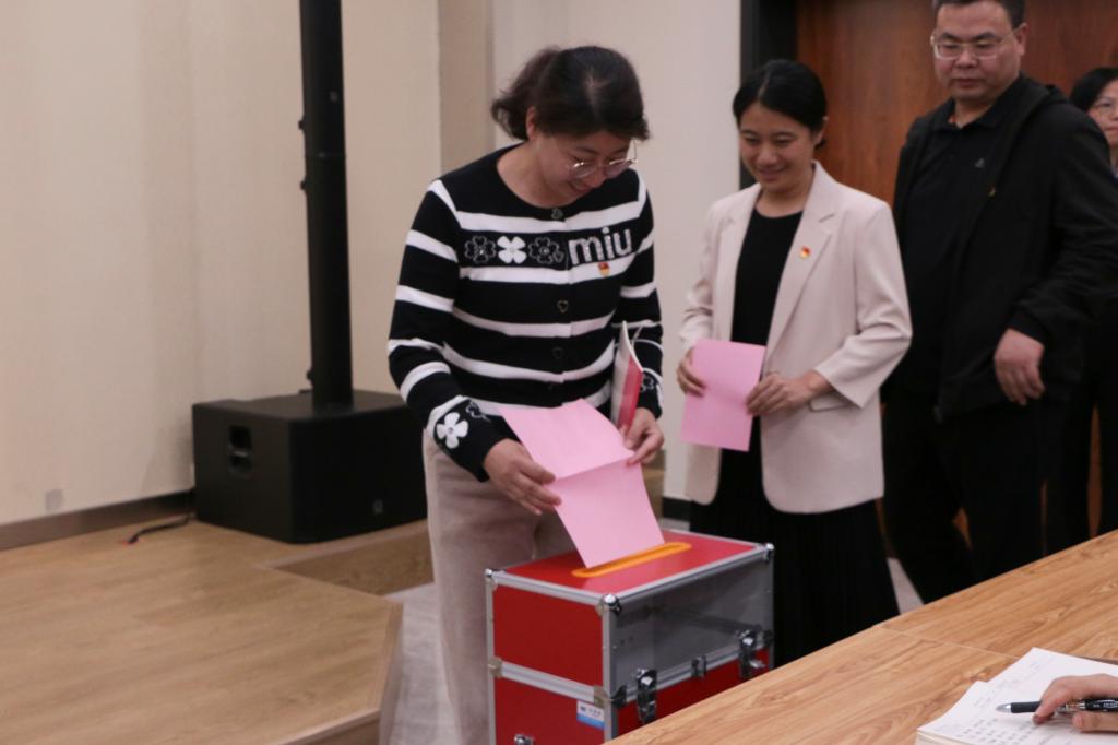 监票人周兴苗、左霞辉向参会代表展示检验票箱,工作人员向全体参会代表发放选票并宣读选票填写说明。全体到会党员代表认真填写选票,投出庄严神圣的一票。投票结束,由监票人监督,计票人开箱清点回收选票。最后,监票人周兴苗现场报告了计票结果。