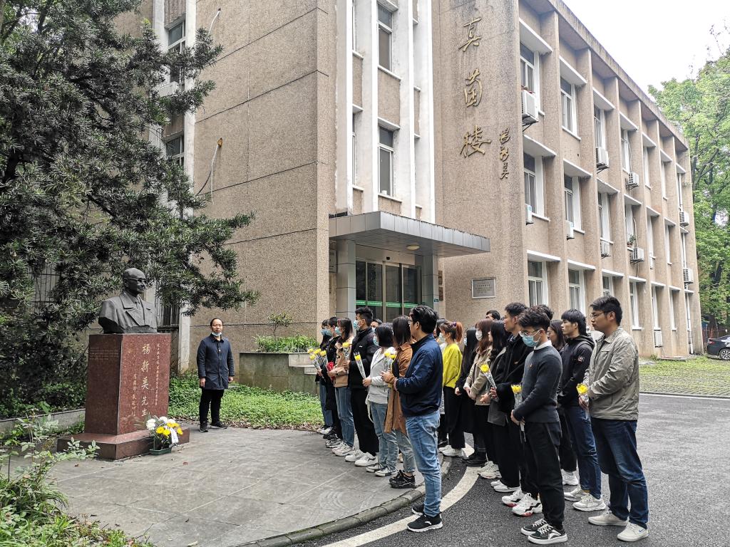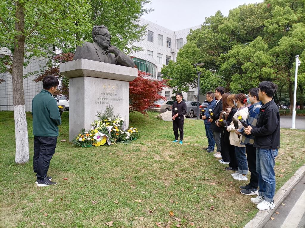 党员师生代表先后瞻仰了刘后利先生、杨新美先生、陈华癸先生铜像并鞠躬行礼,依次敬献菊花。研究生党员葛晓宇博士、陈新博士、李塬浩博士分别讲述了三位学科先贤在立德树人、科学研究方面的故事和成就,勉励大家学习学科先贤,传承先贤精神。