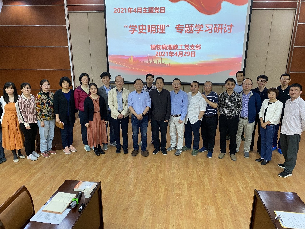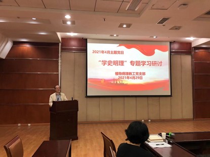 2021年4月29日下午,植物病理教工党支部开展 “学史明理”主题党日活动。院长、支部联系人朱龙付参加了本次活动,活动由支部书记谢甲涛主持。