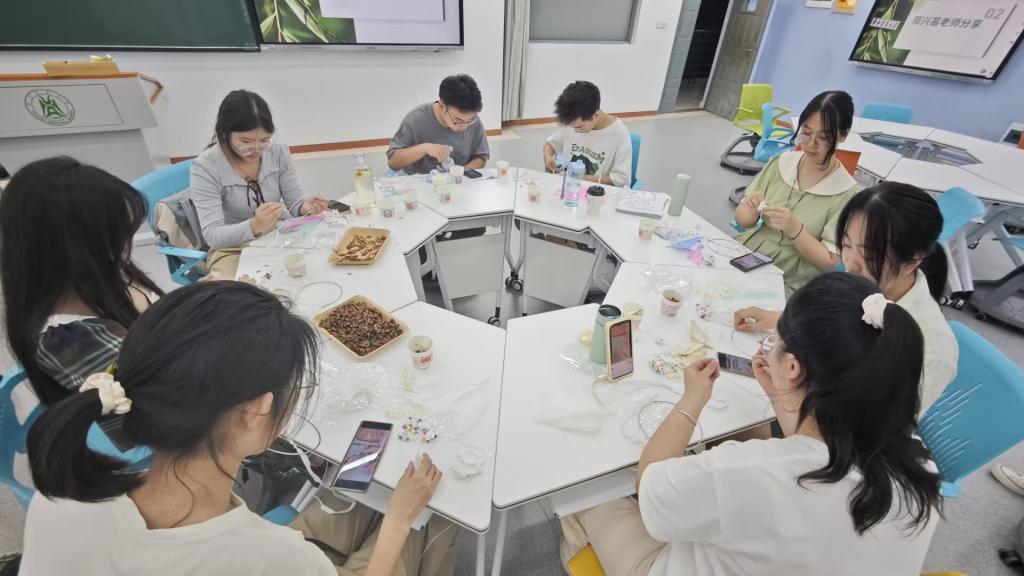 第一次的尝试永远是最难忘的。面对周兴苗准备的各色昆虫美食,同学们有的兴奋期待,有的面露难色,周兴苗帮助同学们克服食用昆虫的心理障碍,鼓励大家“通过敢于尝试,品味百味人生”。植生2307王秋凤同学表示:“不同的昆虫有不同的口感和味道,但都很美味,通过这次活动,打破了我对昆虫的刻板印象,我也不再害怕昆虫了。”同学们在互相分享中交流着昆虫的口感和特性。