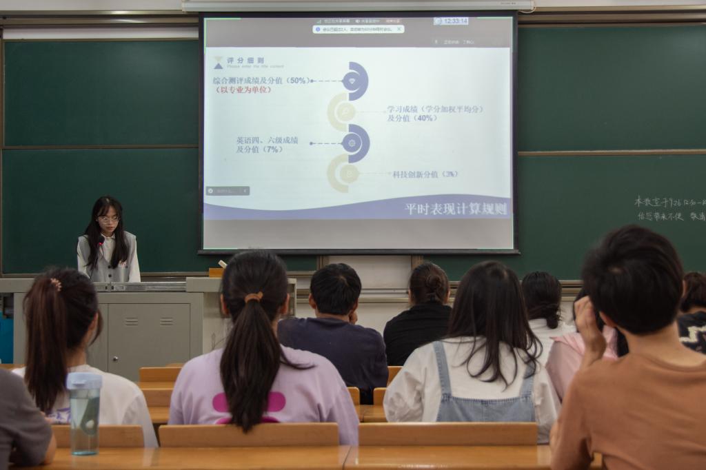 经资办工作人员唐文雨、吴顺兰围绕2024年国家奖学金、国家励志奖学金等奖助学金评选工作方案进行讲解,全面解读了各项奖励的评选条件、评选细则和工作安排,强调了申报表填报的规范和要求,并提醒同学们按时完成材料的提交。